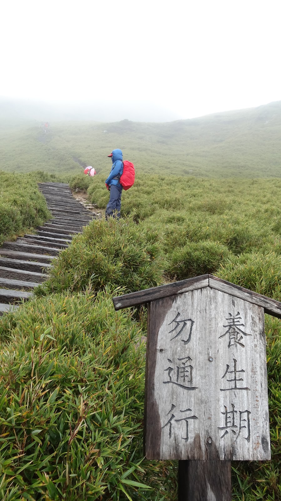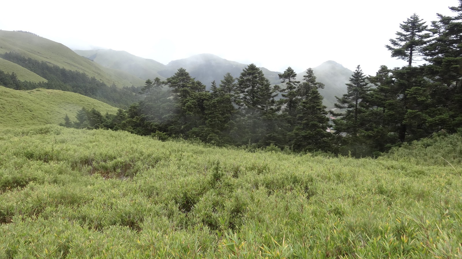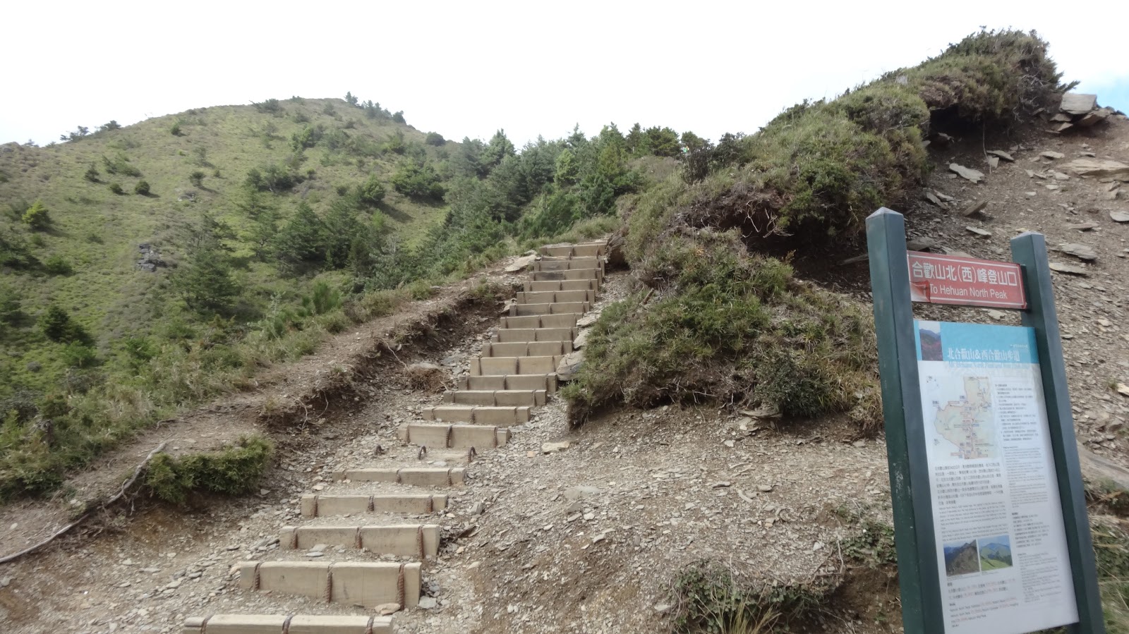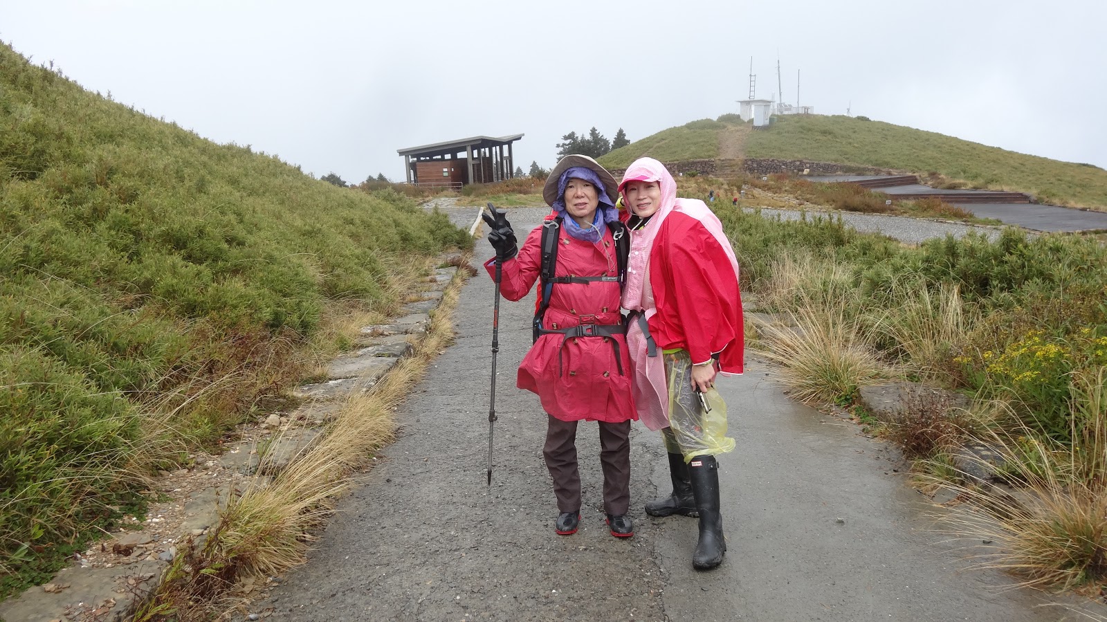 濕冷的天氣, 穿著雨衣, 雨褲及防水帽全副武裝把全身包得緊緊的, 首先挑戰的是合歡山主峰, 繞著山往上走, 雨不停的打在身上, 淋著雨刮著風每一步都覺得猶豫後悔, 或許昨天的表決該投反對票?