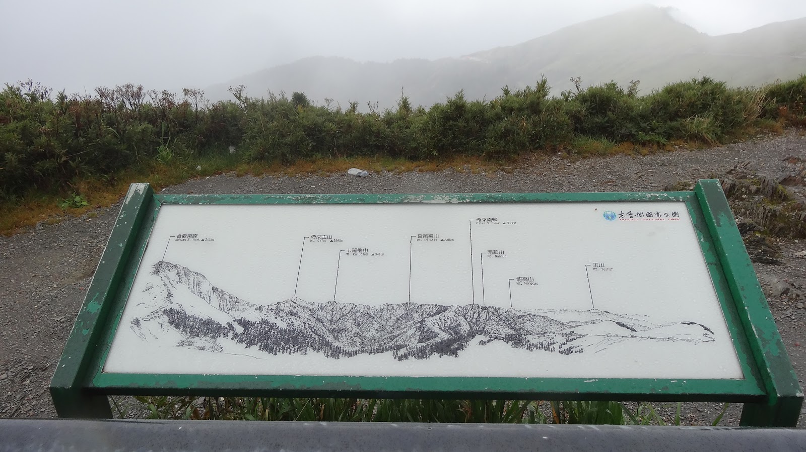 玉山懸鉤子 走著走著來到一處觀景台, 濕冷風大加上低溫高壓, 喘口氣都覺得辛苦