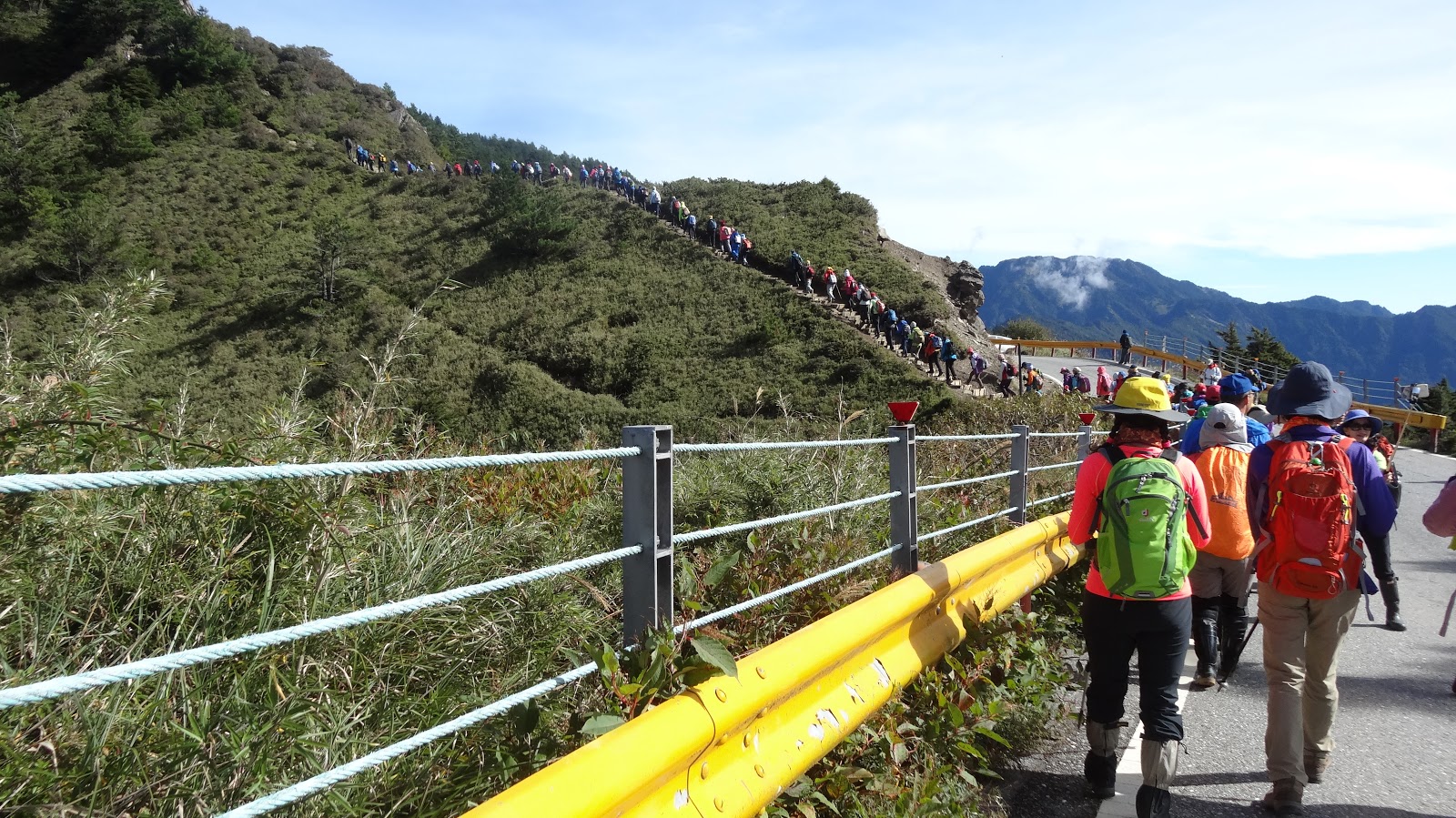 原來前頭是某學校的戶外教學, 行進中小朋友有秩序的慢慢往上走, 也不會喧嘩吵鬧, 看到人經過都會很有禮貌的讓位