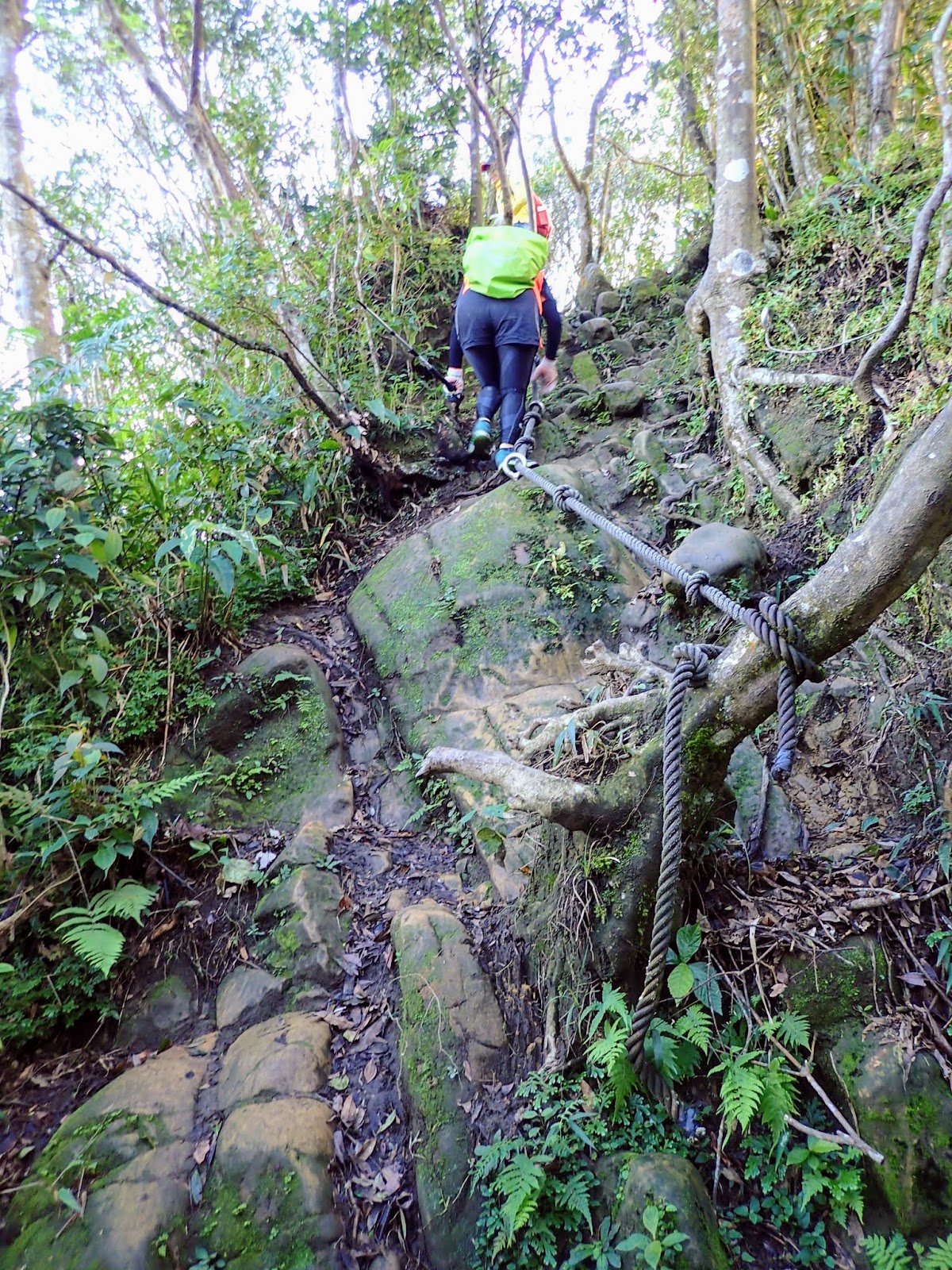 拉繩攀岩, 前面兩位快步如飛, 把我遠遠拋在後, 我是體力明顯不濟, 走一步就喘兩步, 最近幾次爬山都覺得很累, 強烈懷疑是不是之前被恙蟲咬過的後遺症