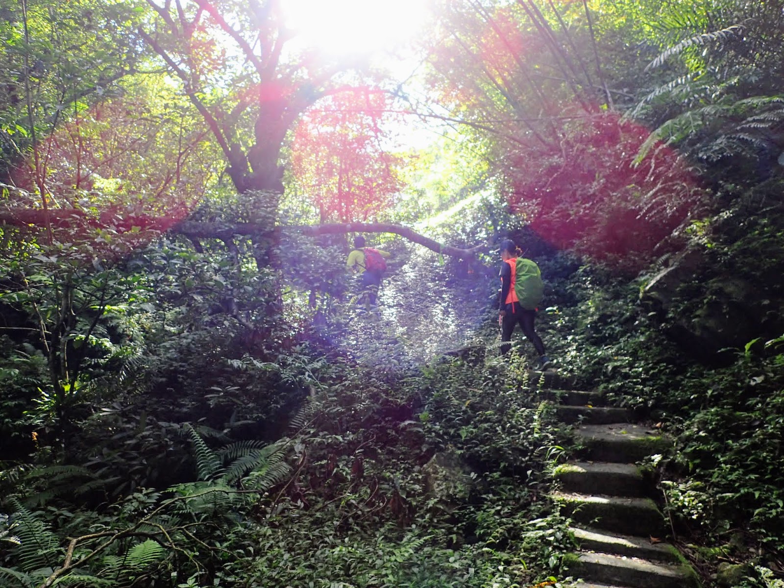步道緩坡上行, 路面微濕穿雨鞋好走