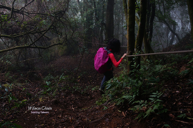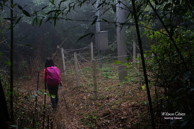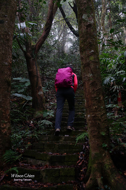 階梯潮濕上爬不到十分鐘就到了稜線處, 這兒有一中央氣象局設立的雨量統計站