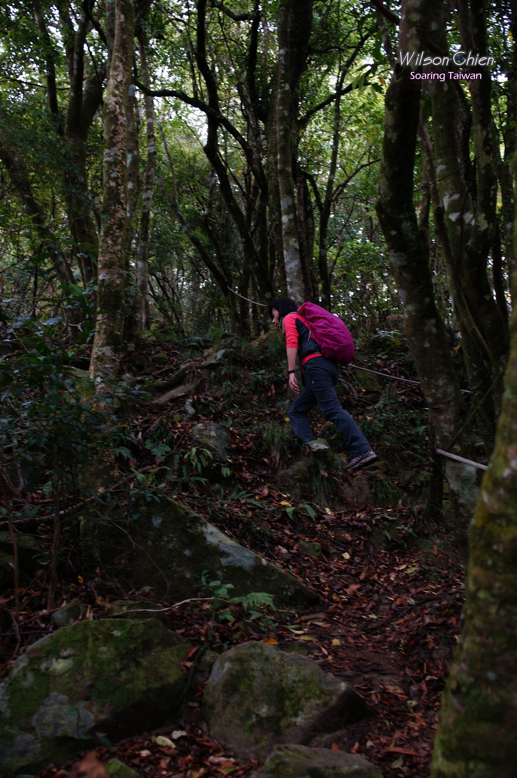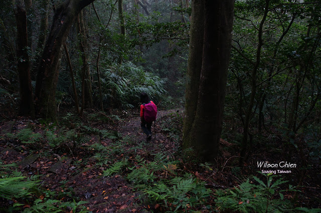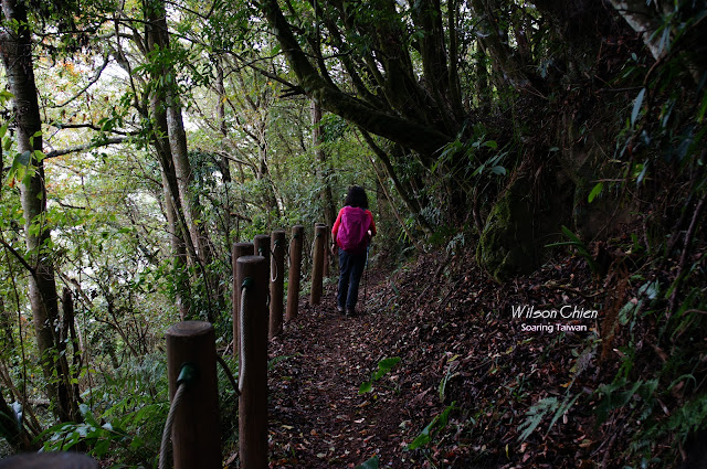 上爬沒多久便是稜線, 且又是古道所以路徑明顯寬又平坦,