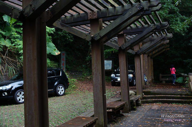 約能停3-4台車還好我們是第2台, 天空雖飄著毛毛雨還是在涼亭旁整裝出發