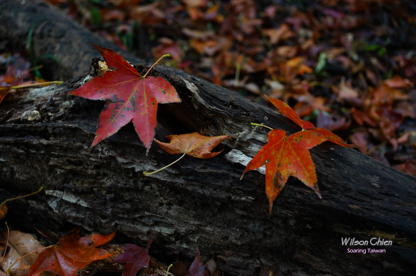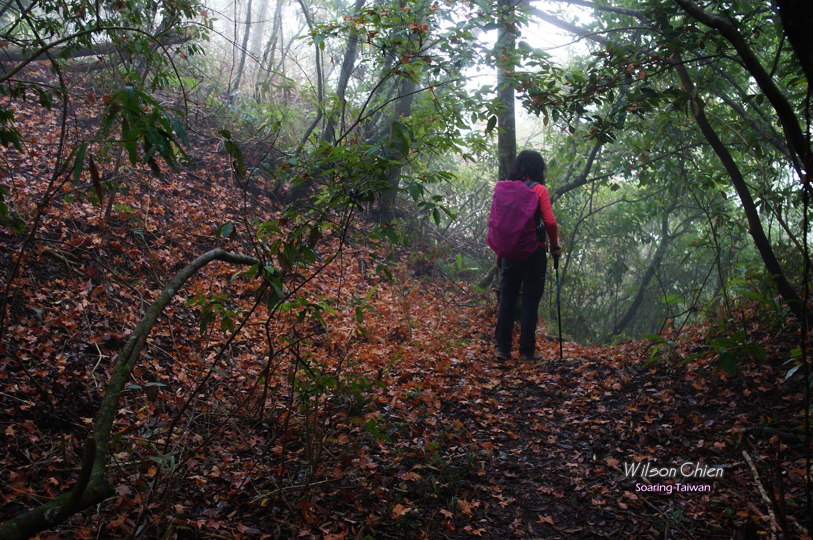 幾乎都是走在落葉的山徑之上很舒適, 還可以看到日據時的警備所遺址等, 沿路的楓紅處處,