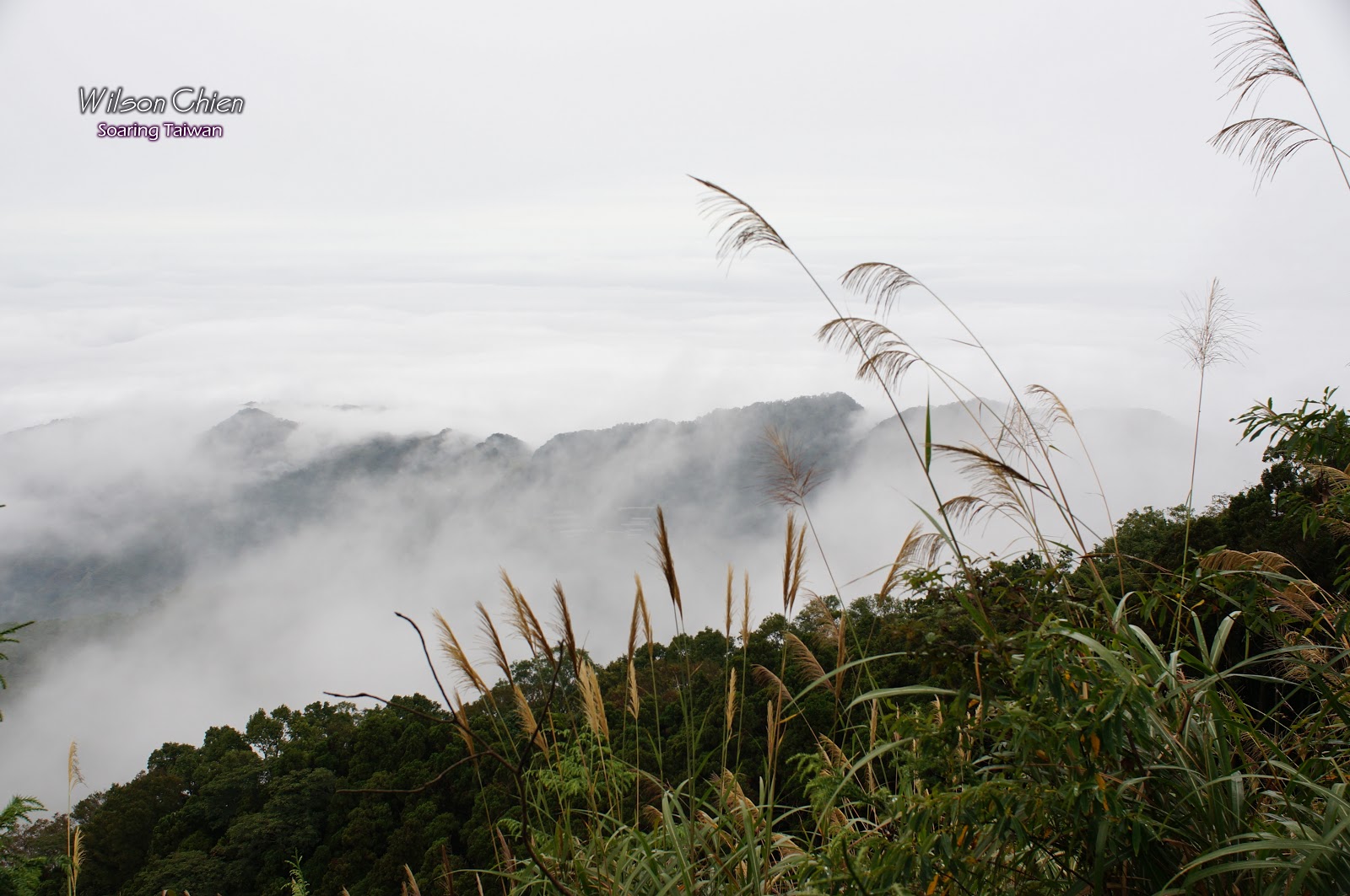 雲海翻騰的前方虎山影約可見, 天氣好時一定是大景處處