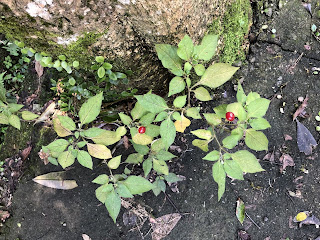 尖銳的石頭光禿的表面.搭上旁邊的蕨類頗有假山水的佈景的味道
