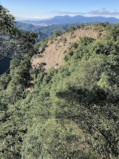有點燒聲.但只能聽到樹叢樹枝的聲音.快速翻過山頭跑到左側山崖下.我沒拍到猴子但是只拍了山頭
