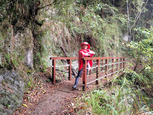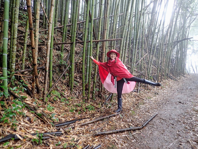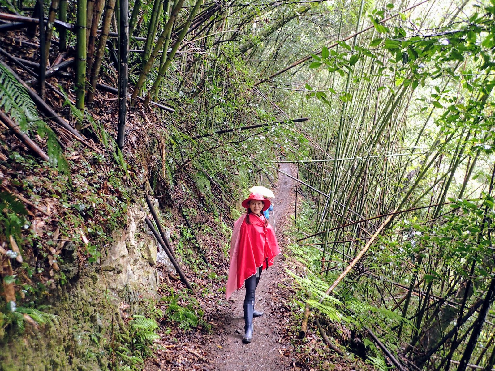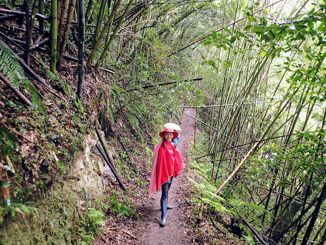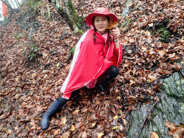 今天有美麗的琴妹同行, 琴妹身上的雨衣經過她巧思改良, 好穿又美觀, 人美手巧, 妳看看, 還是最流行的不對稱剪裁