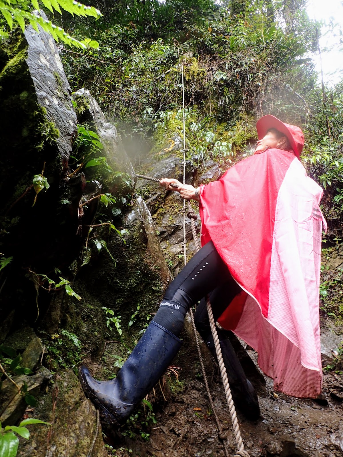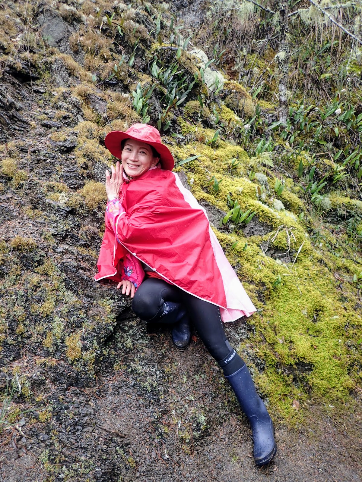穿了藍色雨衣褲, 擠了三件衣服在裡面, 口袋裡還放了一堆有的沒有的, 擁腫肥胖實在是破壞景色了