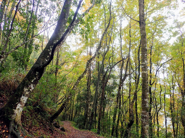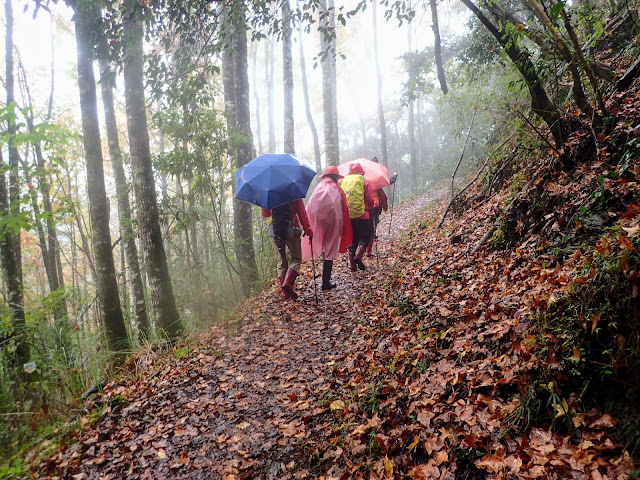 記得霞喀羅去年底跟小白飯糰來過, 那時遍地紅楓留下美麗深刻的印象, 可惜路坍方難行只走一半, 心想他日有機會可以再訪, 剛好小李哥說要辦霞喀羅古道養老段, 順登養老山白石吊橋輕鬆行, 與琴妹二話不說立馬報名, 希望能了卻當時未竟全程的遺憾, 早上6:30館前路集合, 新店總站6:00出車怕錯過, 提早來到大坪林等, 才知每一站6:00都會出車, 哈哈, 真是土包子一個, 坐那麼久的捷運都不曉得, 行程原計劃20人小巴一輛, 結果報名踴躍, 追加到3部車, 10:20來到登山口