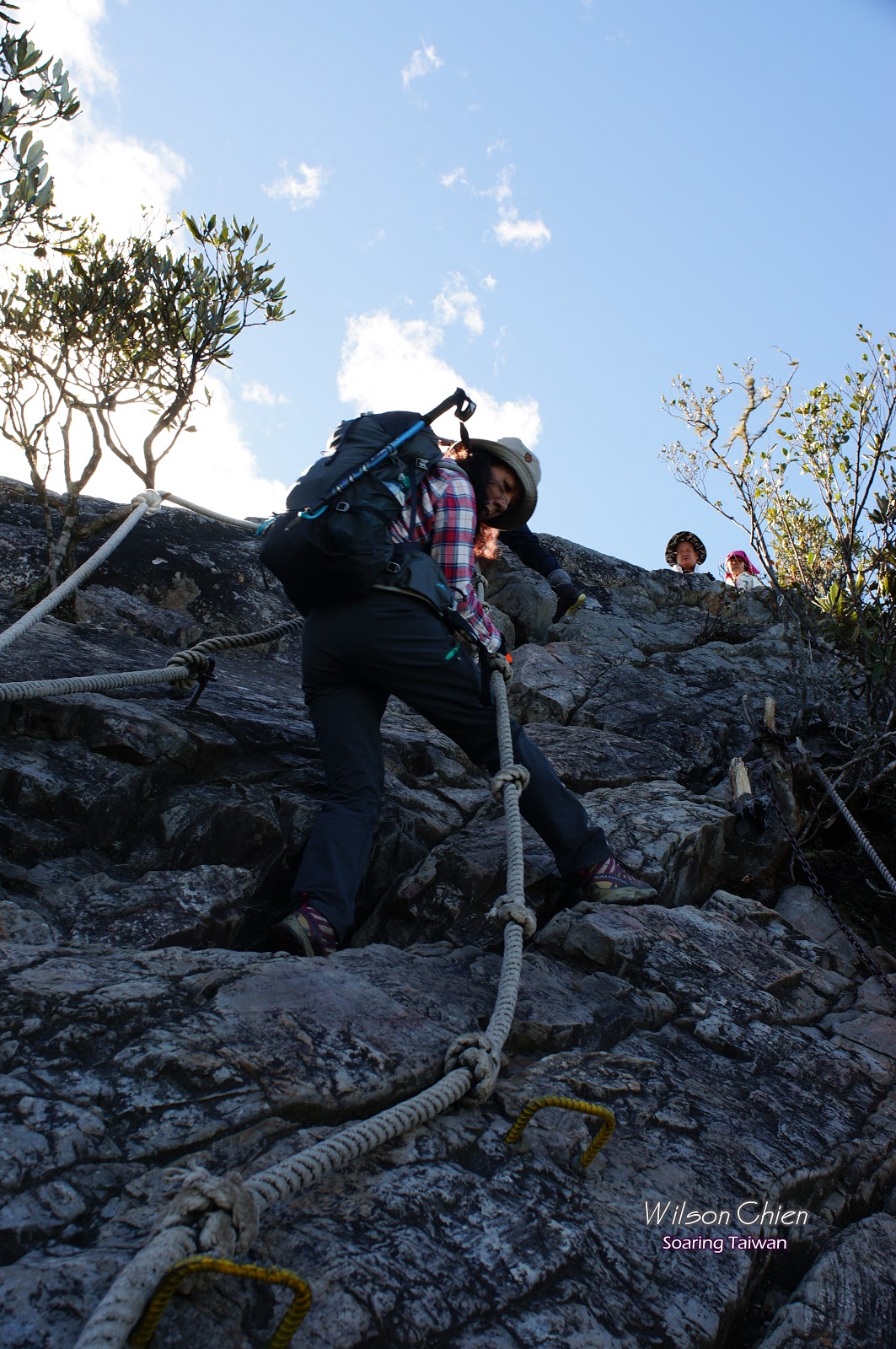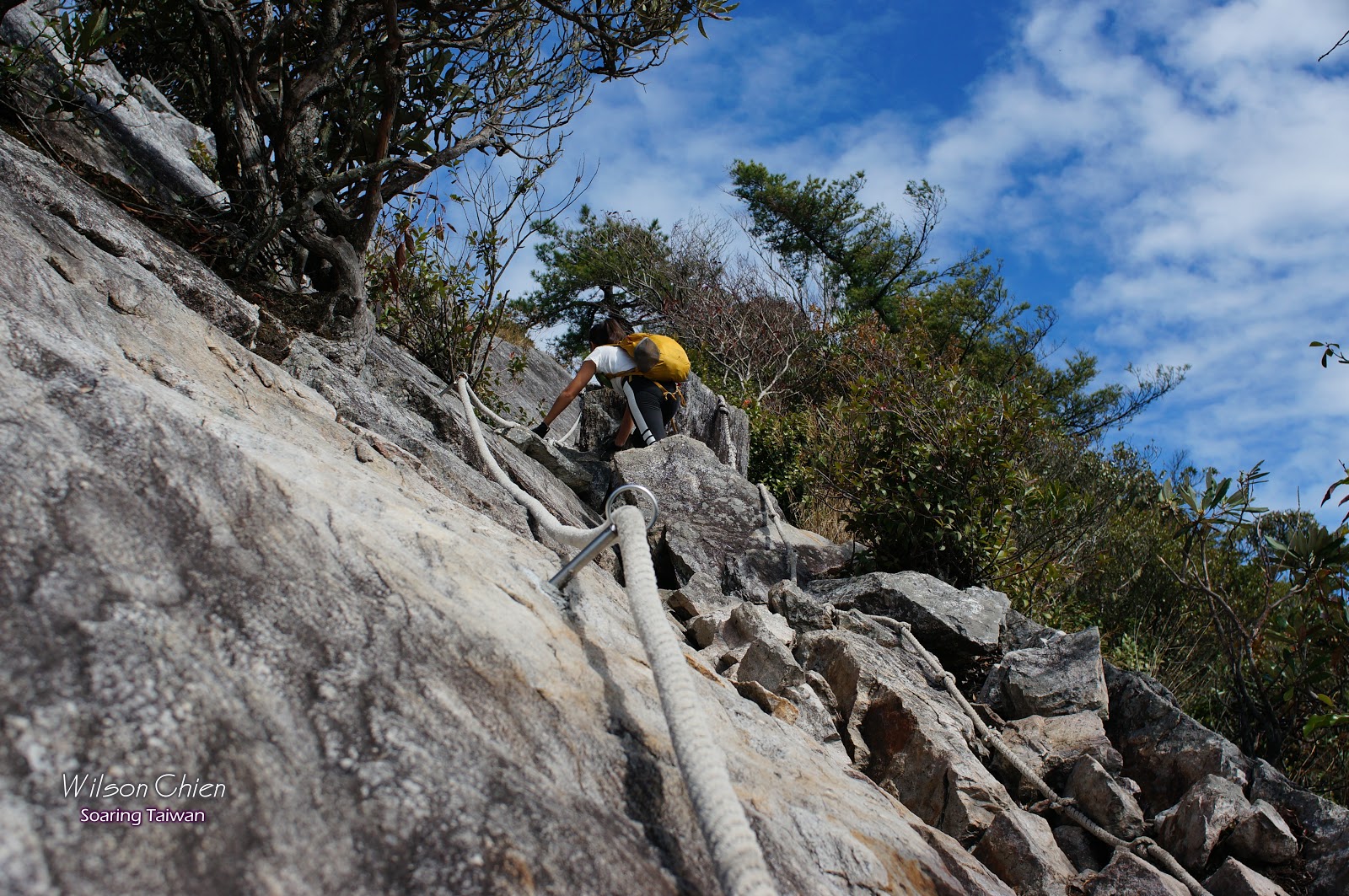 驚險的攀岩加上季節限定的台灣紅榨楓與優質的松針地毯山徑和山頂的景觀視野,