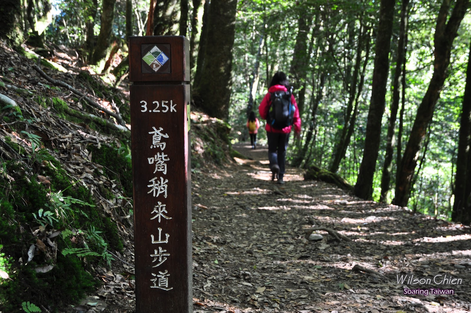 從林道登山口走上稜線只有150m, 轉往鳶嘴山去
