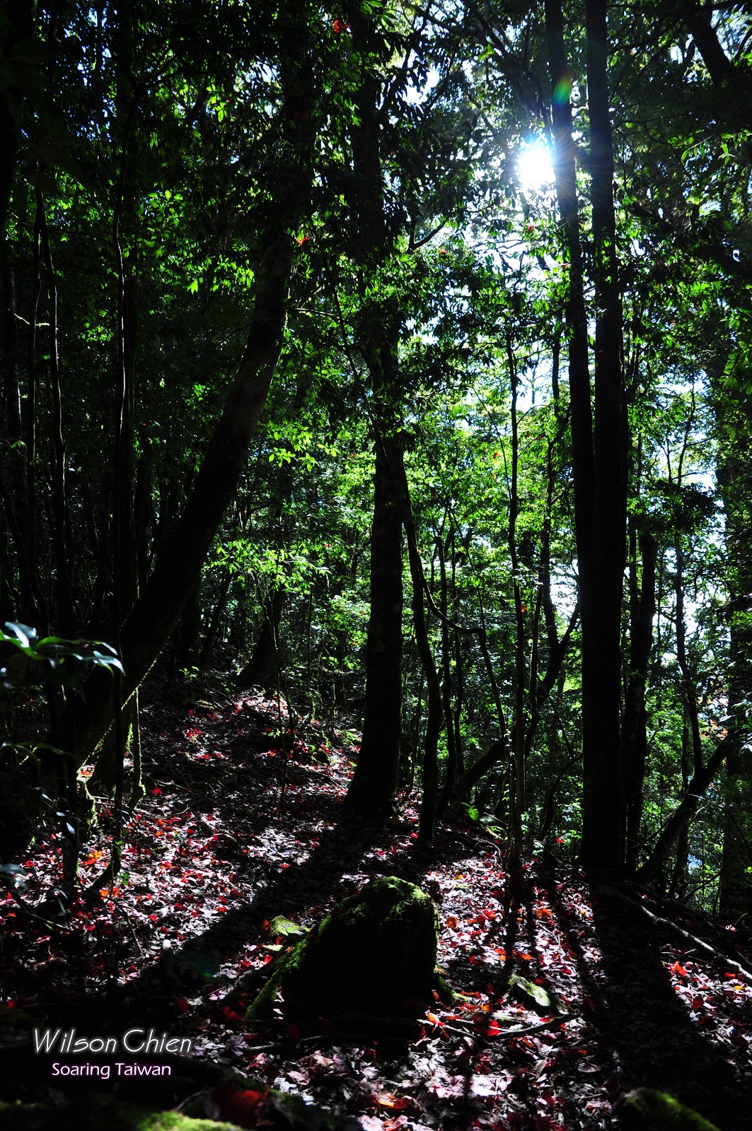 繼續往稍來山前進, 林子裏曬不到太陽有些寒冷風衣穿上
