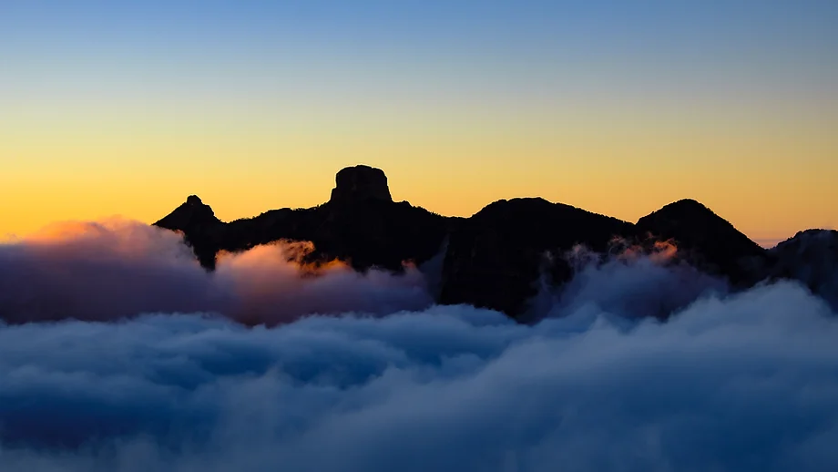 從山屋往山頂的上坡有點陡,身體還沒開機時走很喘,但爬上山頂的瞬間我立刻開機完畢,不是因為冷冽的清晨寒風,而是因為此時的桃山被雲海包圍,桃山山頂與周遭的山群都成了孤立在雲海中的小島,只可惜沒有船能在島嶼間巡航。