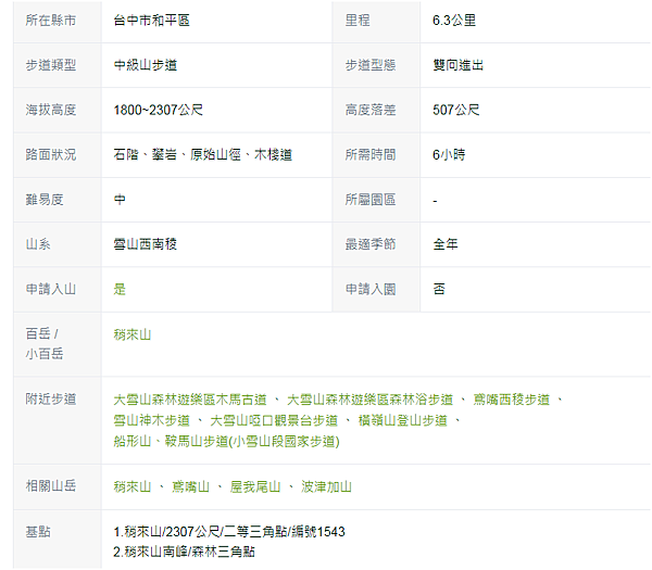 稍來山:海拔2307公尺,小百岳#39。與鳶嘴山並列,是中部假日最熱門的登山路線。