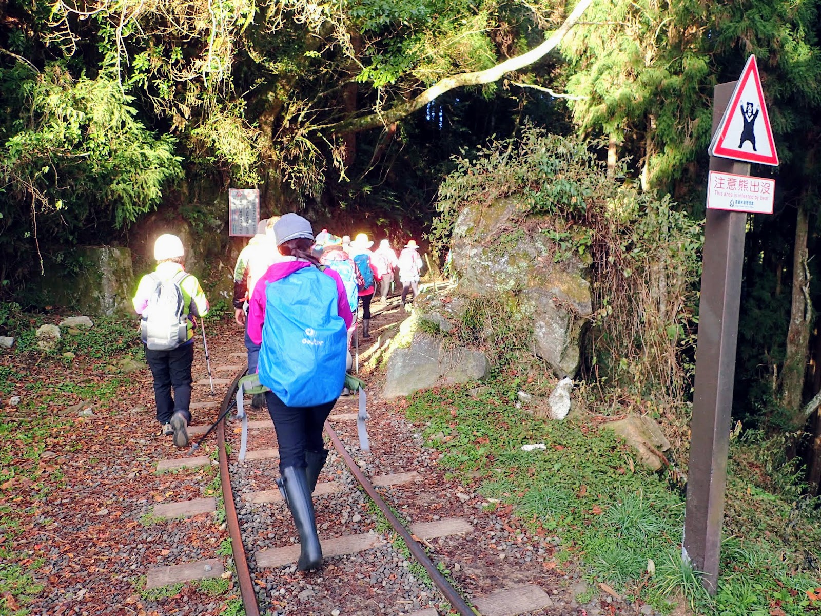 5:00 起床, 5:30吃早餐, 6:00從奮起湖民宿出發, 7:10來到特富野古道入口, 讓大家拍照看日出, 自由活動