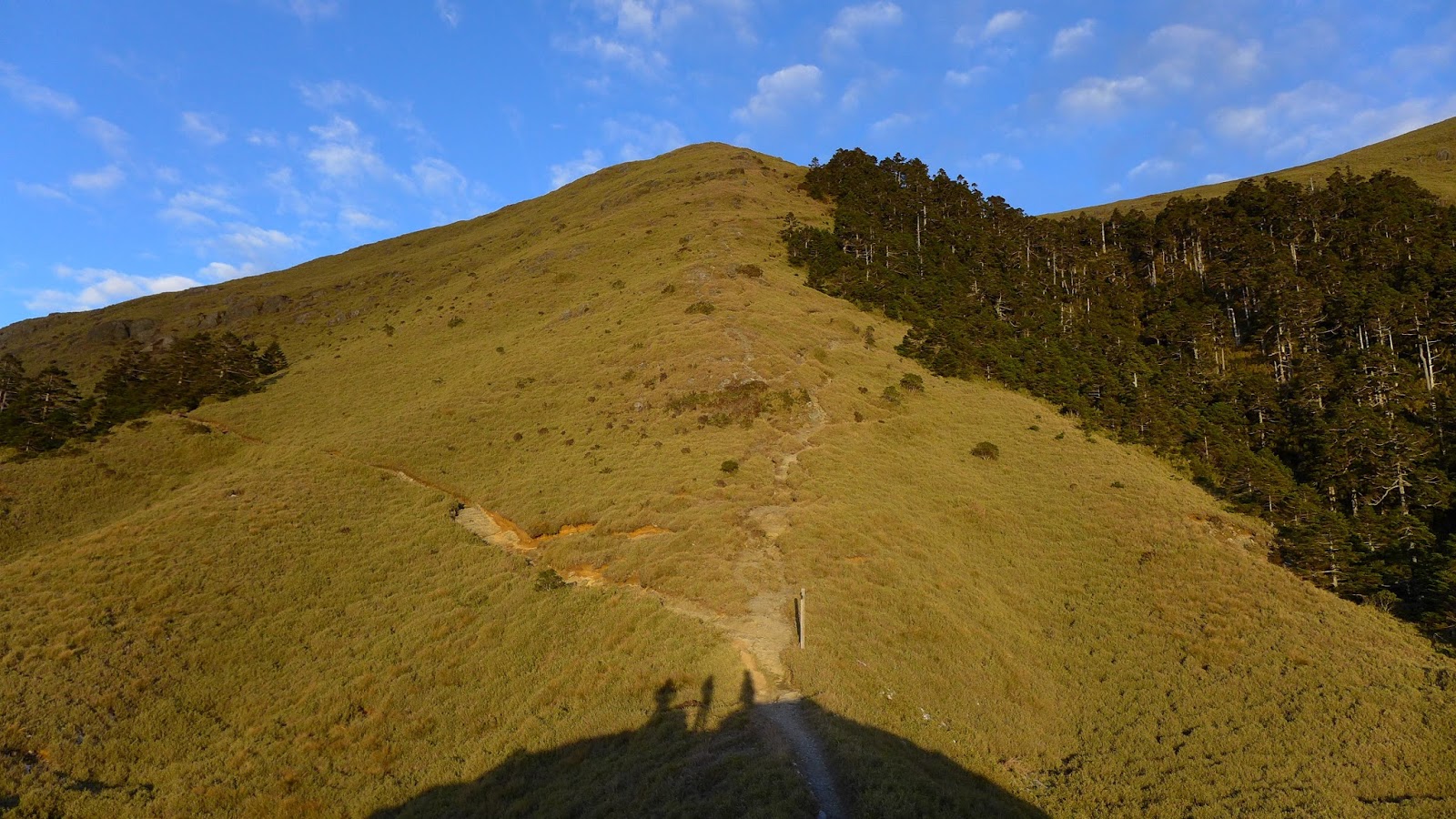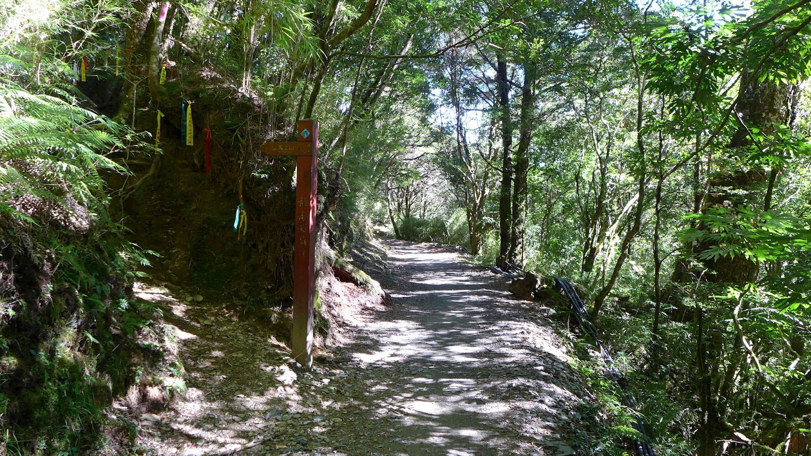 過指標9K之前還有些地方會小陡一會,之後就一路緩到天池山莊前才會再有一小處小陡坡,也因為時間有點晚,所以後面也沒什麼拍照,預計天黑前到山莊,此時就是每走到下一個指標樁就是少0.5K,過一支就精神喊話一下,有沒有用就不曉得啦 ̄▽ ̄。
