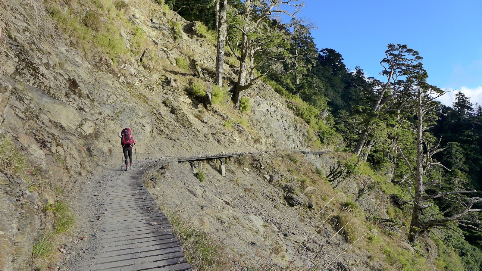 能高越嶺到天池山莊的13K其實很單純,就是一直腰繞再腰繞,只是過雲海保線所後有一處陡坡,因原舊路損壞直接往上高繞到森林線內,其他大至平緩好走,偶爾幾處稍陡。