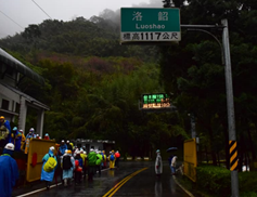 再出發,隨著海拔逐漸下降,天空的冰珠亦轉變成小雨滴,路旁的積雪也慢慢的退去。雪退了,路好走了,夥伴們步伐也就邁開了。今日的21公里,在半雪半雨、洛韶好漢坡,以及耳邊迎來洛韶山莊駐站大哥大姐的歡呼加油聲中,抵達號稱中橫白宮的「洛韶山莊」。