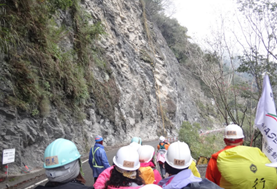 完成整裝,再次出發。一樣的歡送隊伍,一樣的倍受祝福。今日的16公里,對昨日已完成21公里挑戰的夥伴們,心中早已有了定見。雖說較昨日少了5公里,但是仍然必需面對中橫公路施工路段整點放行的管制。大夥在領隊兄姐言語鼓勵下加快步伐,以精準的相差不到一分鐘,趕上了管制哨口。為了夥伴們可以安全,看見領隊姐主動全程攙扶腳痛的夥伴通過落石路段,還一邊打氣著說「因為大家都是夥伴」,著實讓人熱淚盈眶。