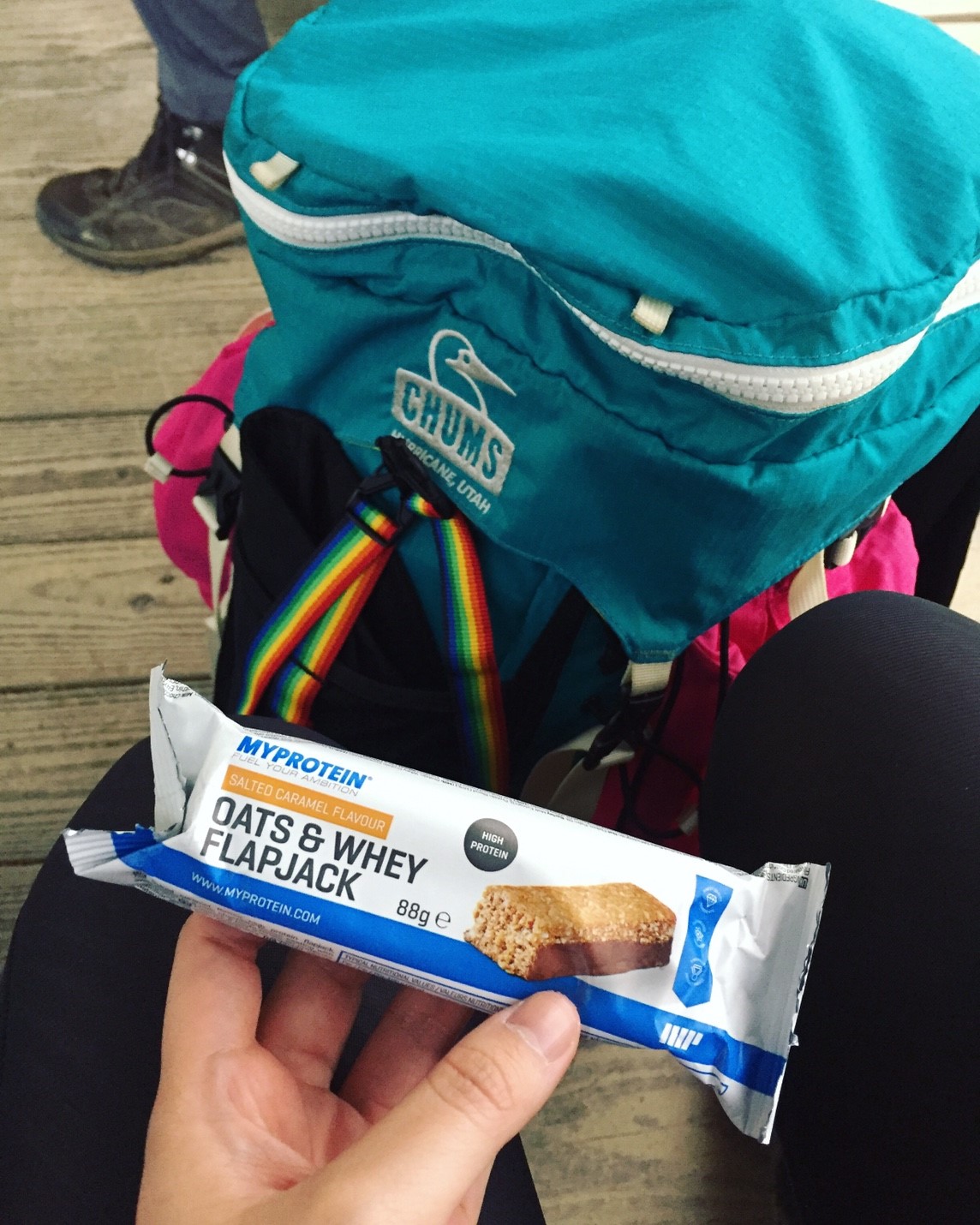 我帶了4條MYPROTEIN的燕麥乳清蛋白棒當作隨身糧,