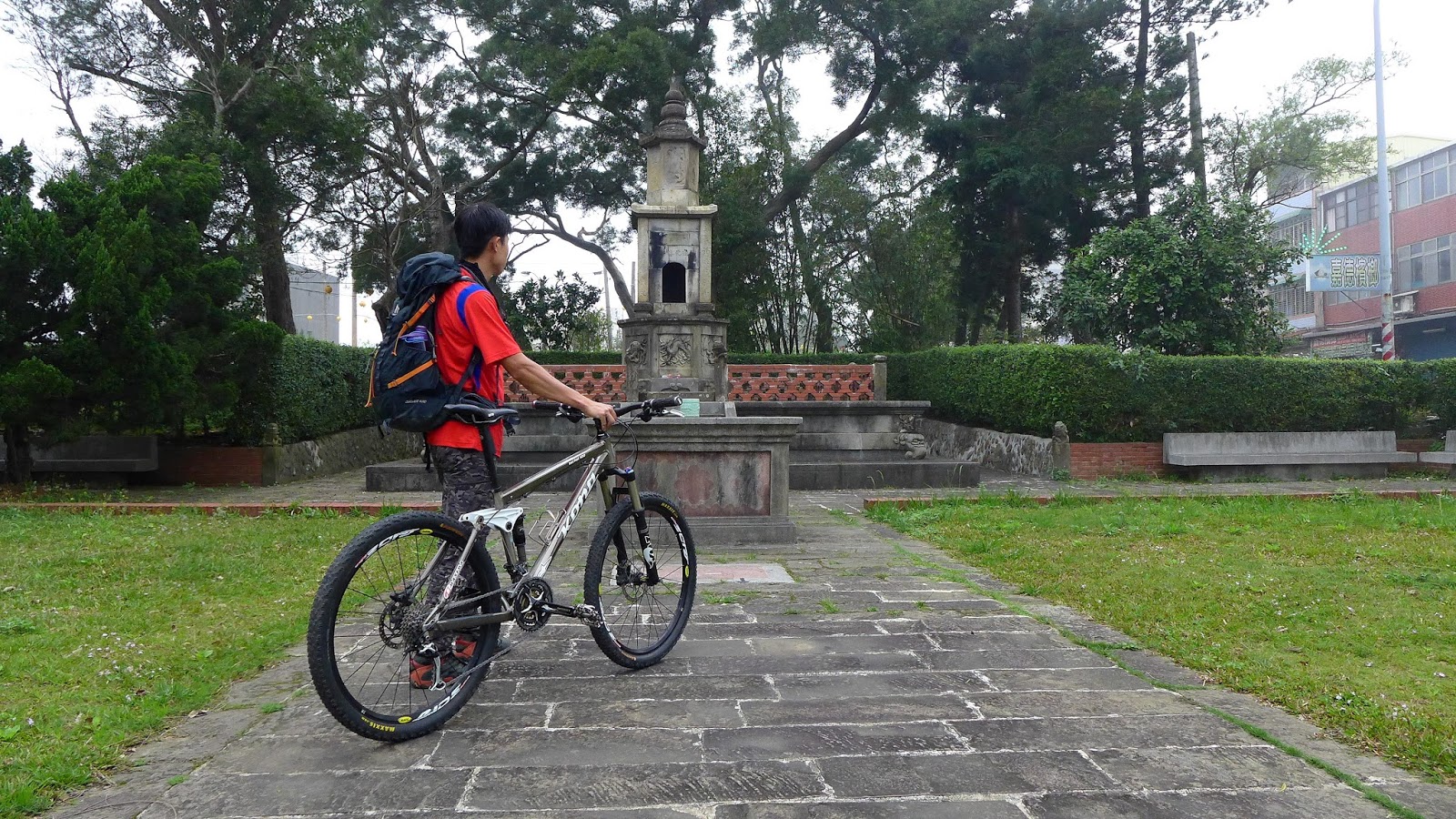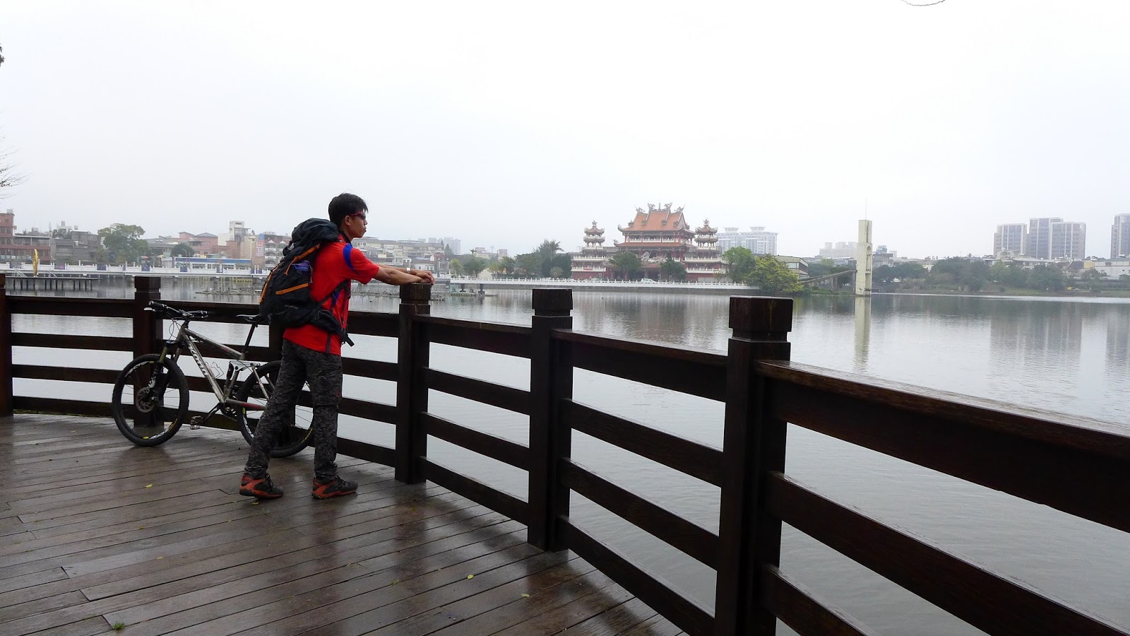 其實第一天出發因有事較晚到龍潭,出發前先去吃午餐,老闆說早上還天氣又好又熱,孫子都脫到剩短袖了,我來才剛好變天,要不要那麼巧!!,預報說會有雨,幸好這一整天下來只有剛出發噴了一小會後,一直到今日結束都沒遇到。