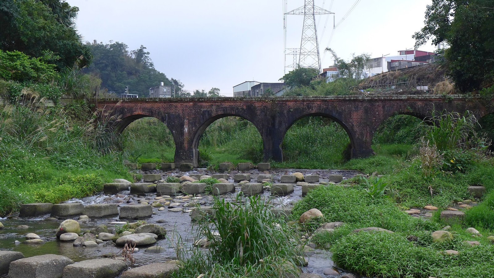 因紅磚堆砌而成且緊臨大平聚落,又稱為大平紅橋,橫跨打鐵坑溪,為當時大平與三坑的唯一聯絡要道,紅橋雖然已稍微褪色,還保有它的風采,不過周圍雜亂草堆這部份有點可惜,希望能整理整理,相信會更加吸引人。