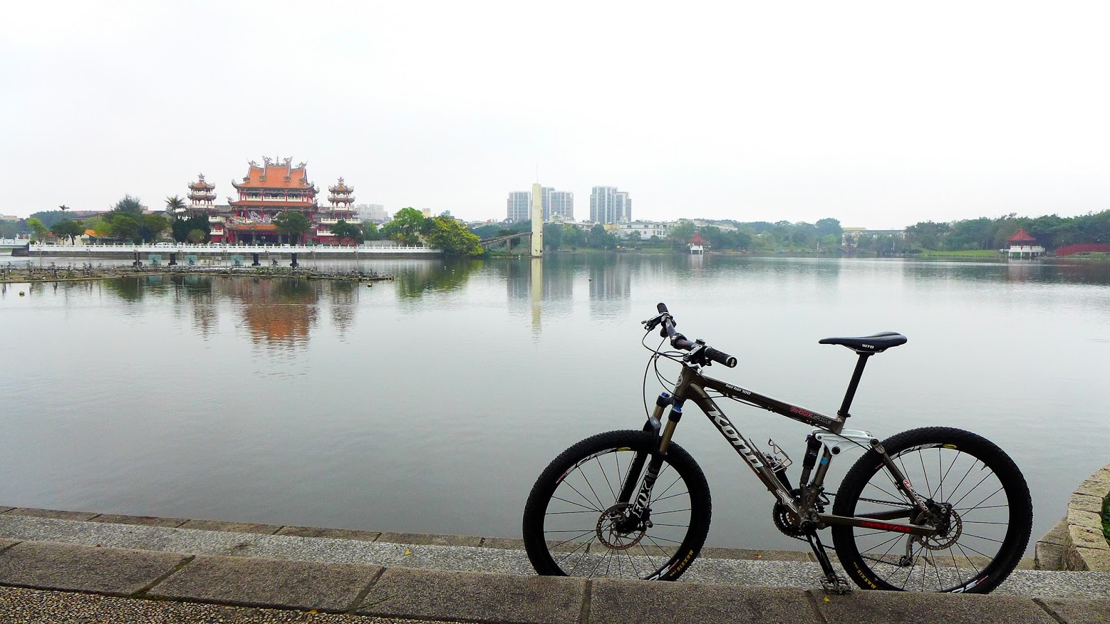 大池在清代乾隆時期開發,原為灌溉用途,現在為龍潭相當醒目的地標景點,人工島中的南天宮為儒、佛、道三教合一的廟宇,為龍潭最大的廟宇,不過目前周圍在整修,通往南天宮的九曲橋也封閉,改從另一旁自行車道接續行進路線,吊橋因安全問題拆除,將會重建成斜張式吊橋,並整合周邊,相信日後能成為具有相當吸引力的景點。