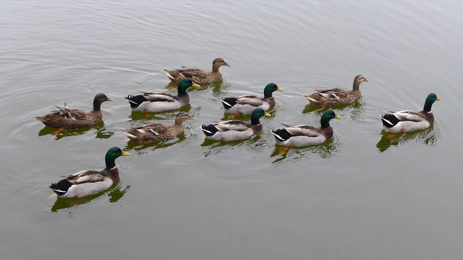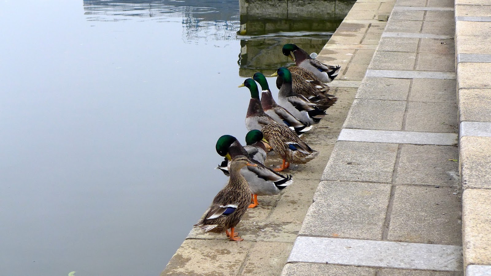 看這這群綠頭鴨在岸邊悠哉的搖屁屁還挺療癒的