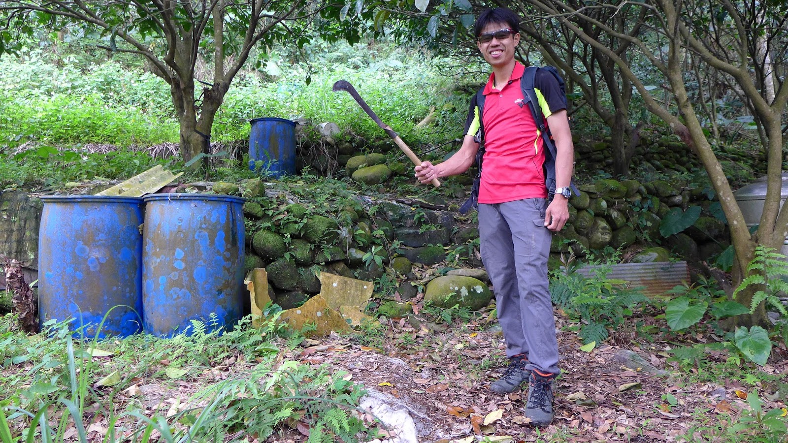 說到這一層層的駁崁,第一次來羅先生說要沿著駁崁往上爬就可以看到路徑,結果越爬越偏,越來越高,高到覺不對勁,當初這裡到底是做了幾層阿....?眼鏡還在裡頭不知何時消失,沿著軌跡回頭找眼鏡,幸好有找回來呀。