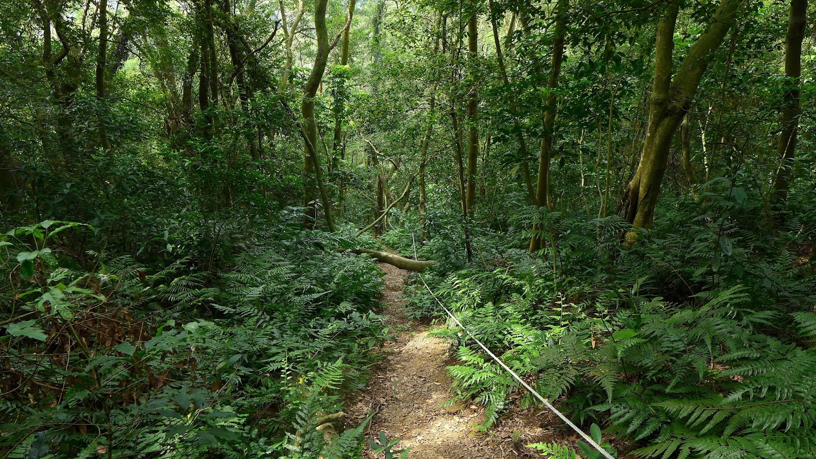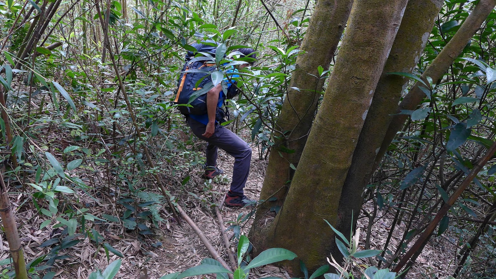 這段主線是先完飛沙縱走後才來開始走的,因此這段路包括後續其他行程只要進原始山徑山手上都不是拿登山杖,都是用枝葉在掃蜘蛛網,果然走起來舒服許多,不用一直撞到蜘蛛網在那邊撥來撥去,特別我又愛穿短袖...黏到手臂上也是挺不舒服的阿。