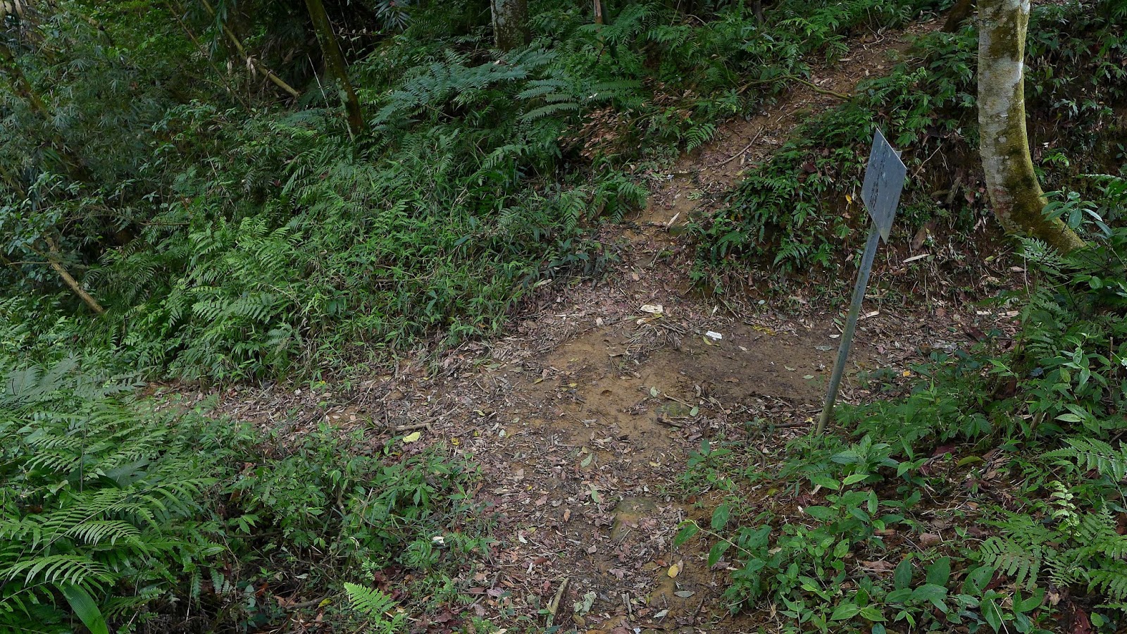 再次進入原始山徑,這段小竹坑山徑只要出去就和主線相接,桃園副線就可告一段落,不過新竹段的副線石牛山環型路線就跟桃園這是連在一起的,原本就有計劃要一次走完,進小竹坑山徑後來到一處廢棄屋舍,這裡是通往石牛山叉路,找地方藏車,雖然覺得今天應該沒什麼人會來走,但還是藏起來保險點。