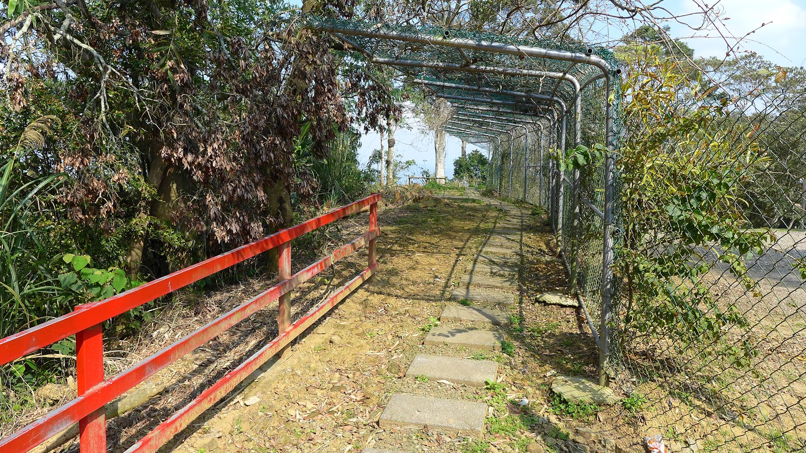 往中坑山前進,從觀日亭走過來會接上水泥產道,這位置更適合看日出,也是想撿飛鳳山最偷懶的路線,因為看到不少機車直接騎到這放,往發射站方向前進,就會看到下一顆基石為中坑山。