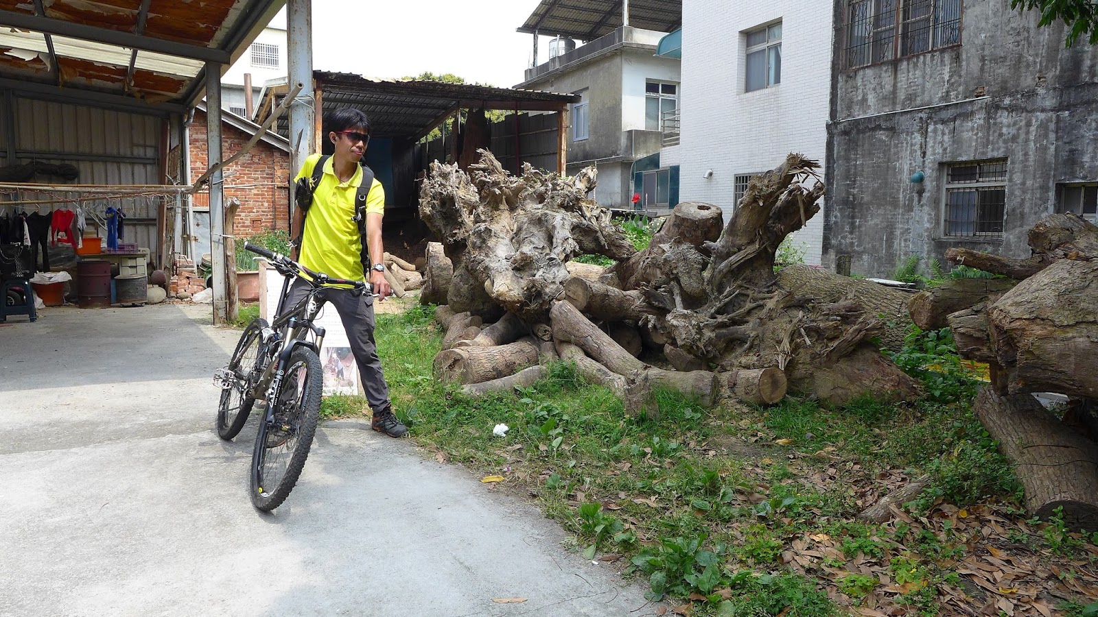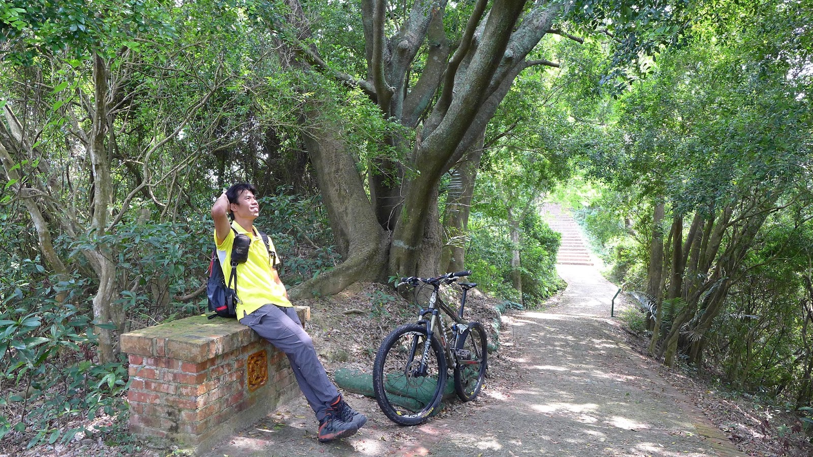 騎到古道時發現後輪輾到黃金,因為深胎紋根本清不乾淨,只好在扛的時候特別注意避免中到衣服上,好在需抬的距離不長,不然就有得歪腰了,下山還在找個哪地方可以清洗,熊熊發現路旁不就有一條現成的水圳道。
