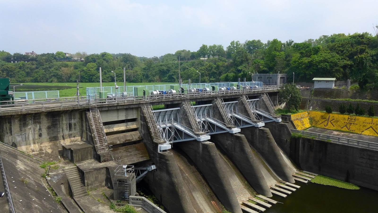 由水壩看過去滿滿綠一片的布袋蓮