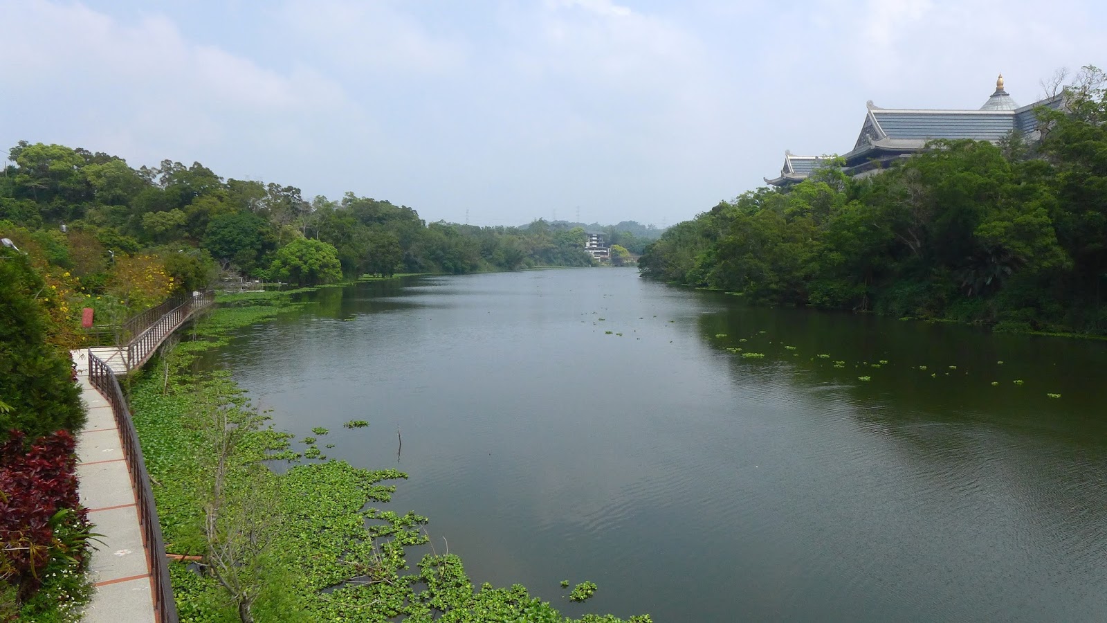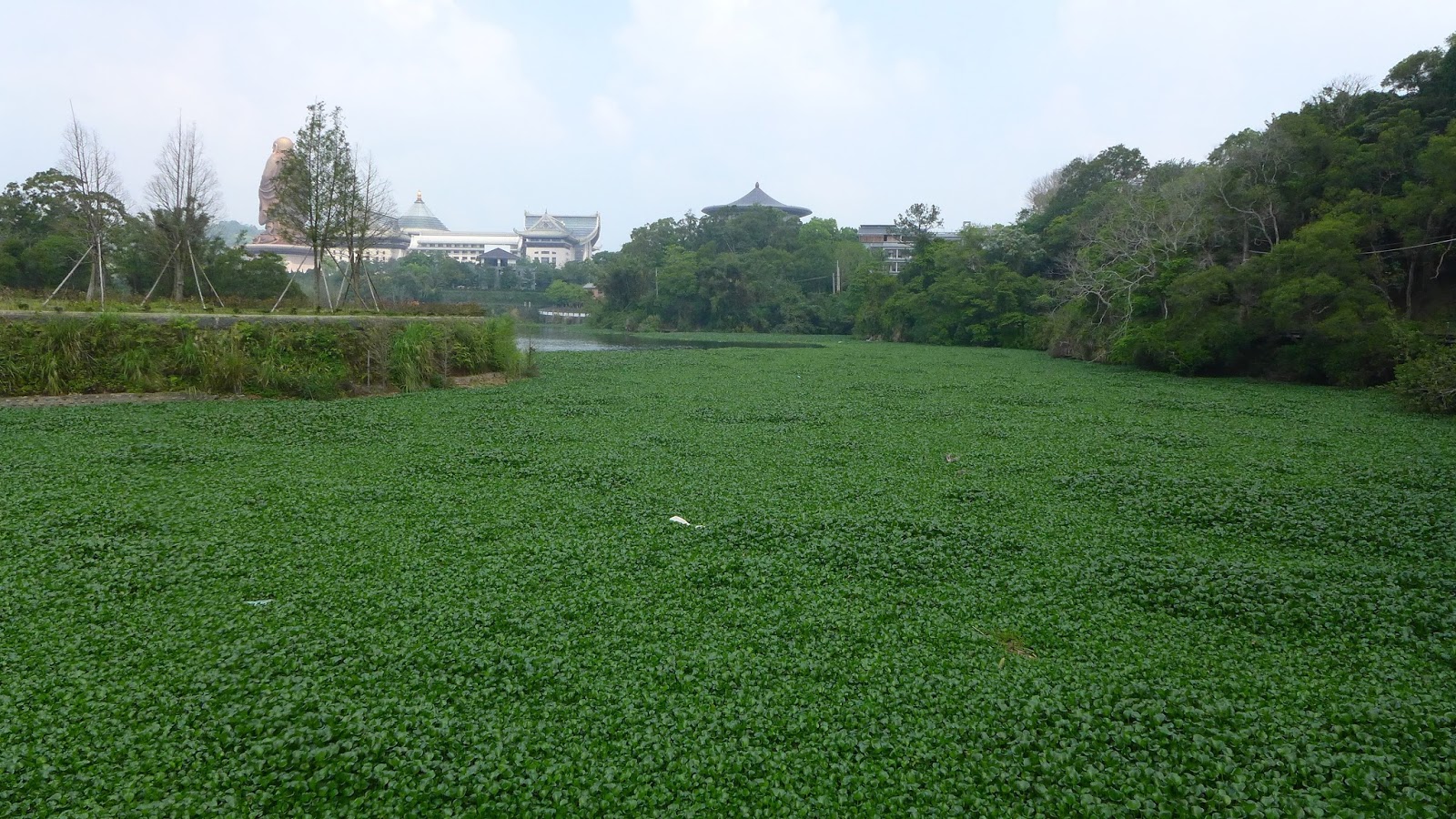 通過一段上上下下的道路,來到峨眉湖的上游蓄水區,被這誇張數量的布袋蓮給看傻眼。