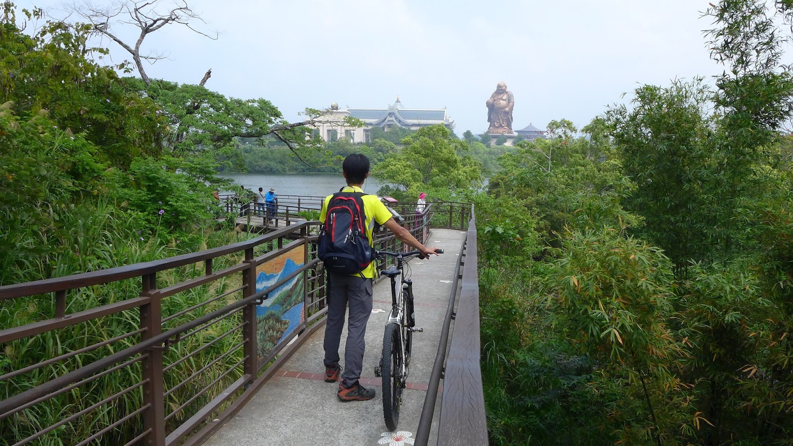 過去來只有走環湖道路,這次來就走環湖步道,下方還有3D彩繪步道,這邊規劃發展觀光一直有在進步,沿著步道可更近觀賞峨眉湖風光,只是希望布袋蓮別這麼誇張就是了。