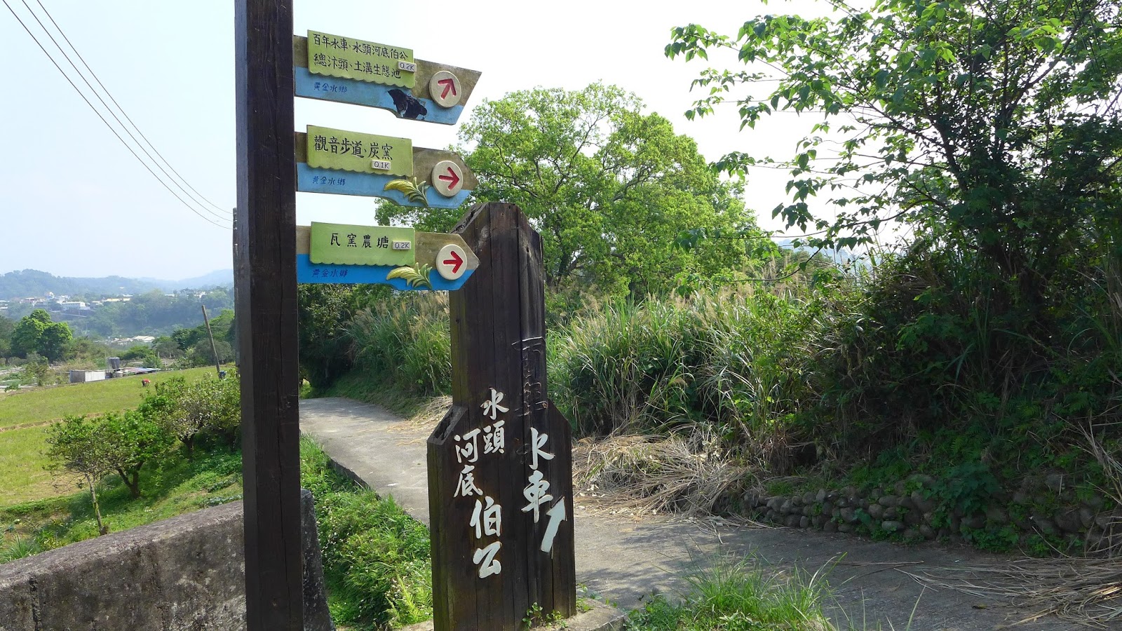 沿著竹22鄉道走,水圳道也一路沿著,因看到水車時稍停一下,一般經過可能不會注意到,梘頭圳,這是古早將頭前溪水經水圳引入灌溉,遇山谷或溪流所製的行水橋,又稱浮圳,古時讓水走的橋叫筧跟梘,前者為竹子製作,後者則是用木頭製作,後來以水泥建造行水橋,梘這詞直接沿用下來。