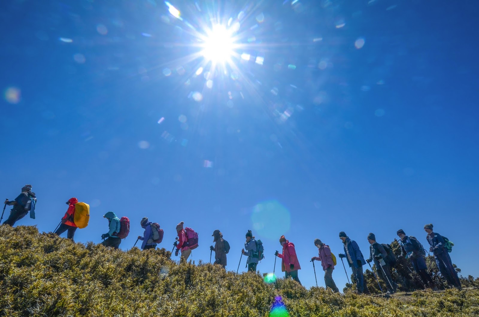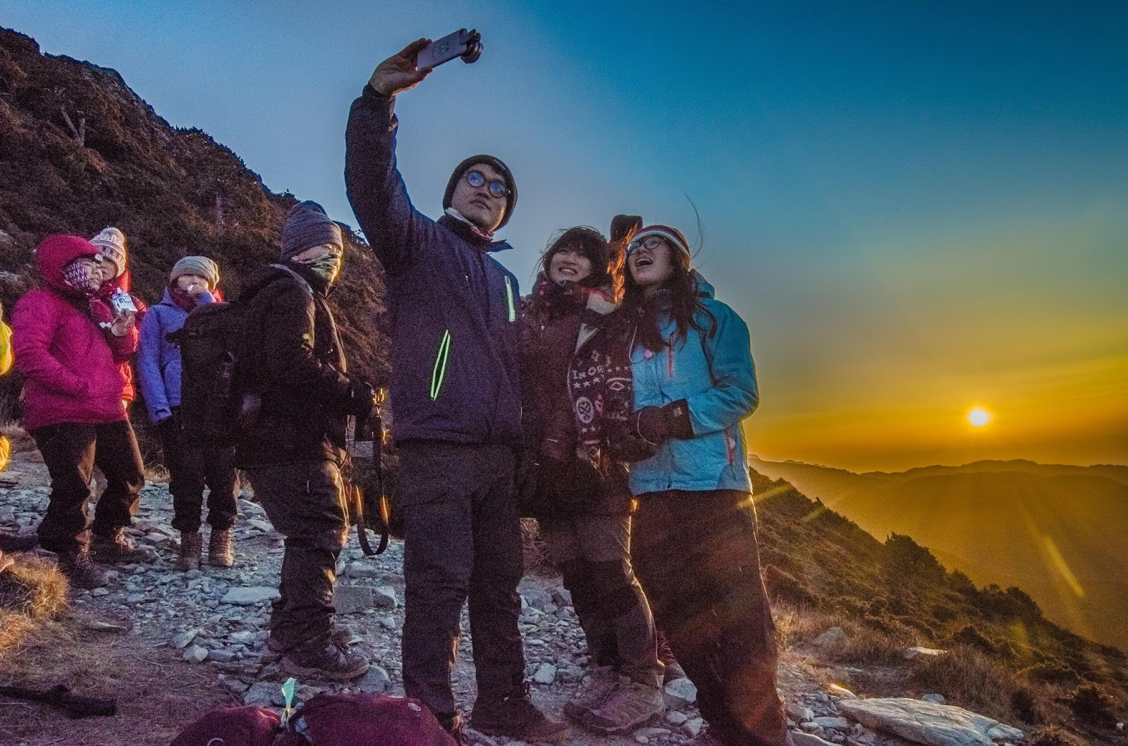 上稜線前達拉冠一一確認每個人有沒有穿得夠暖