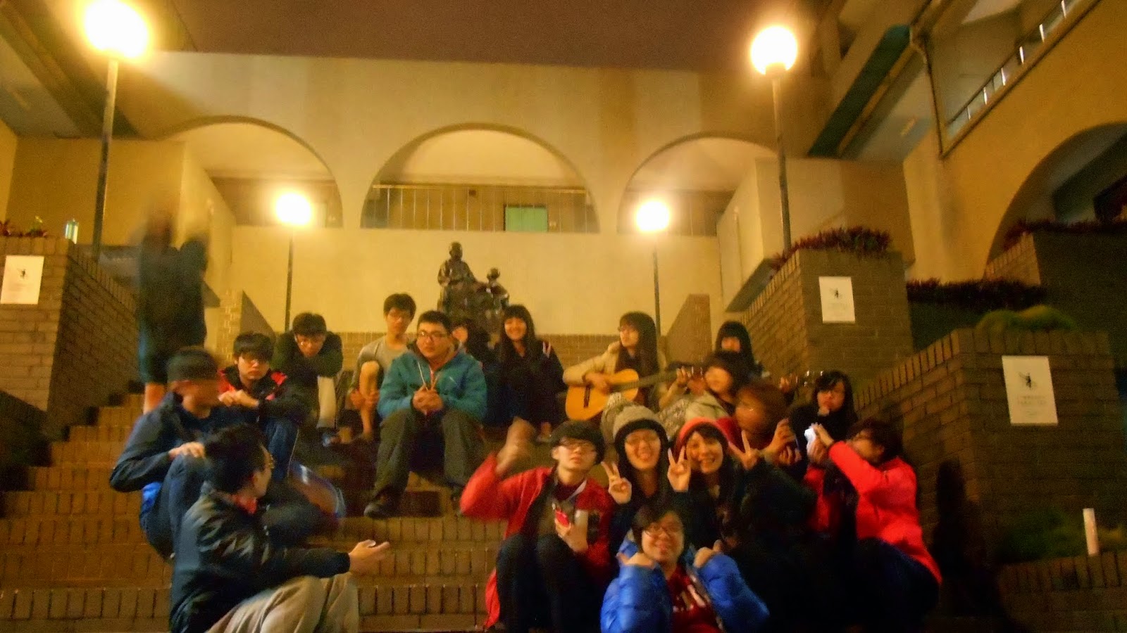 但是洗完澡出來,看見領隊兄和夥伴拿著吉他在外頭彈唱。