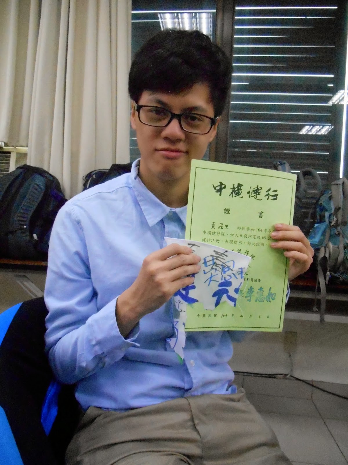 我們小隊有位夥伴去年有來走過,所以已經有一張證書。 索性把姓名簽在正面~ |
