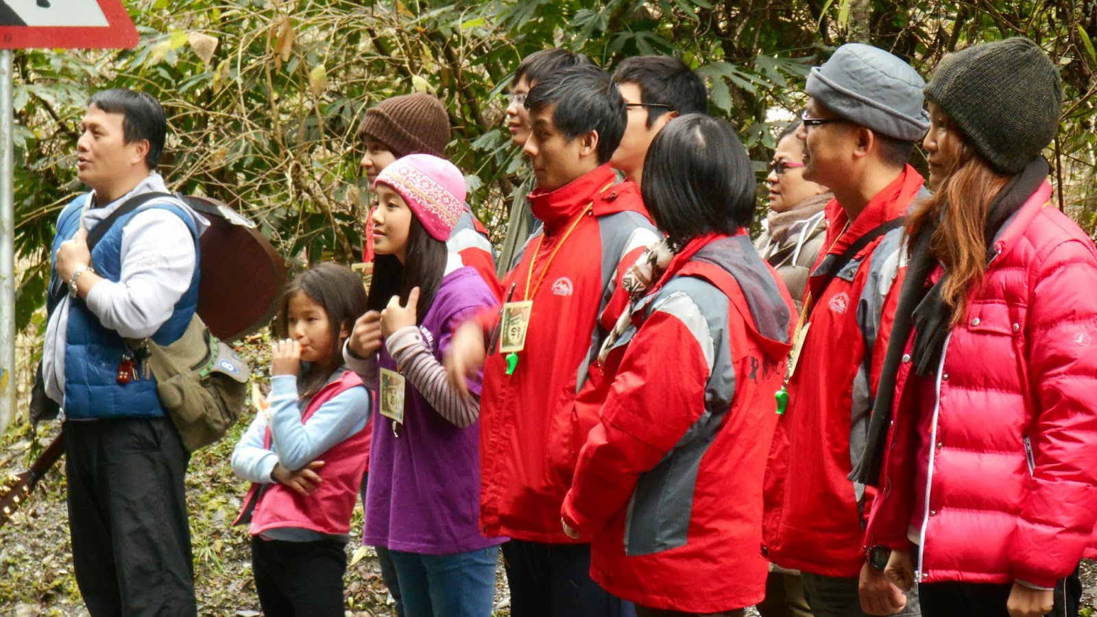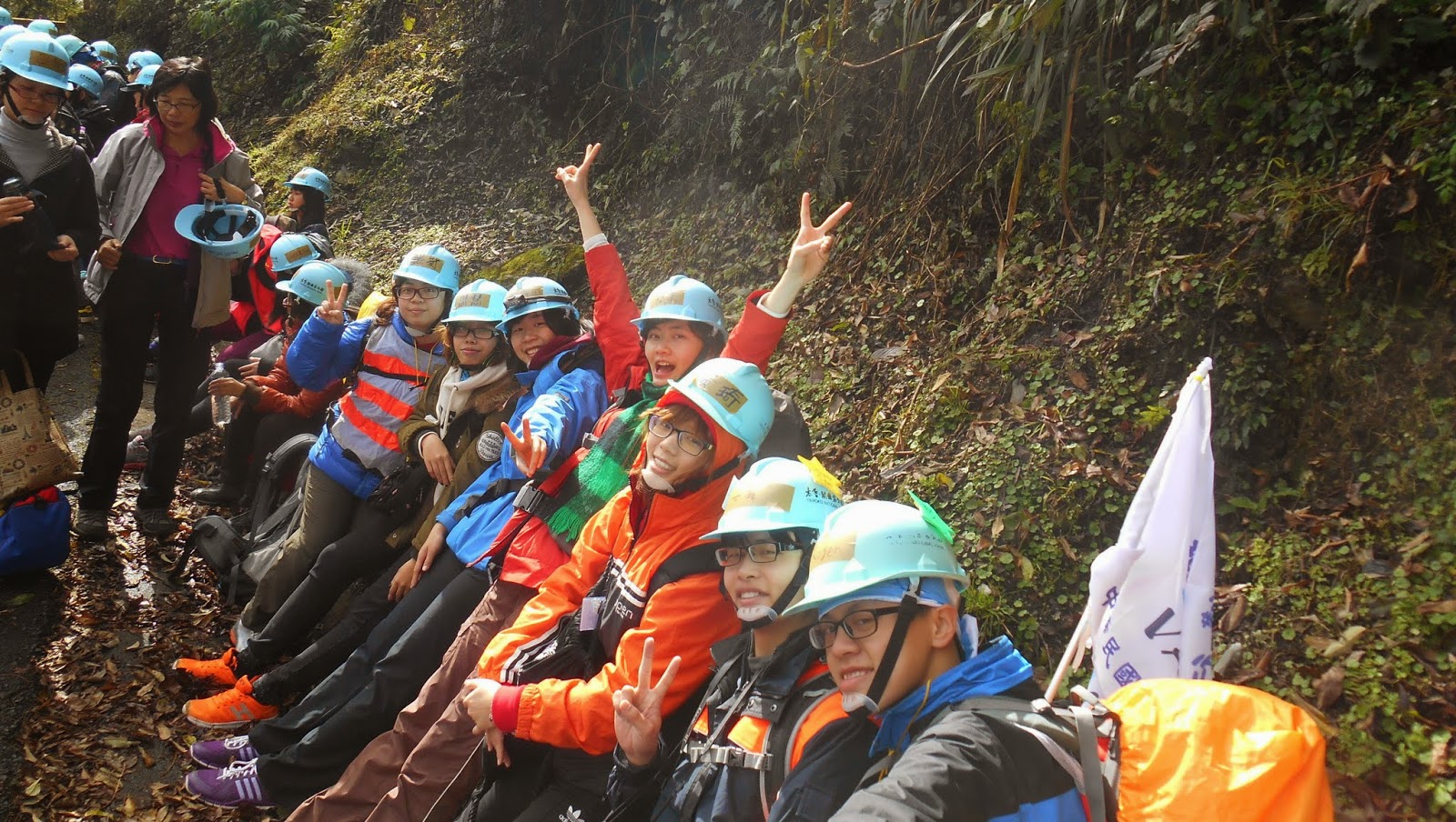 同行友人被任命為掌旗官。 掌旗官座右銘:「旗在人在,旗不在就找回來。」 結果出發後旗子就不見了...被插在路上的電線桿上XD |