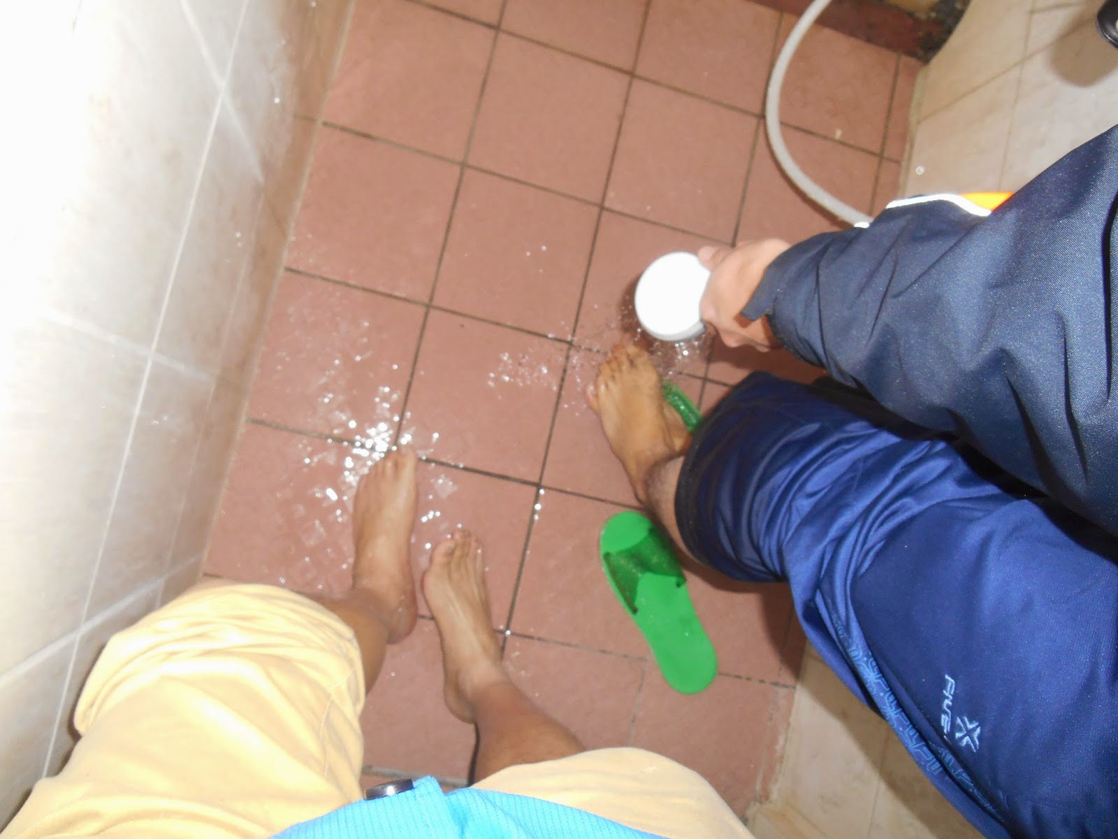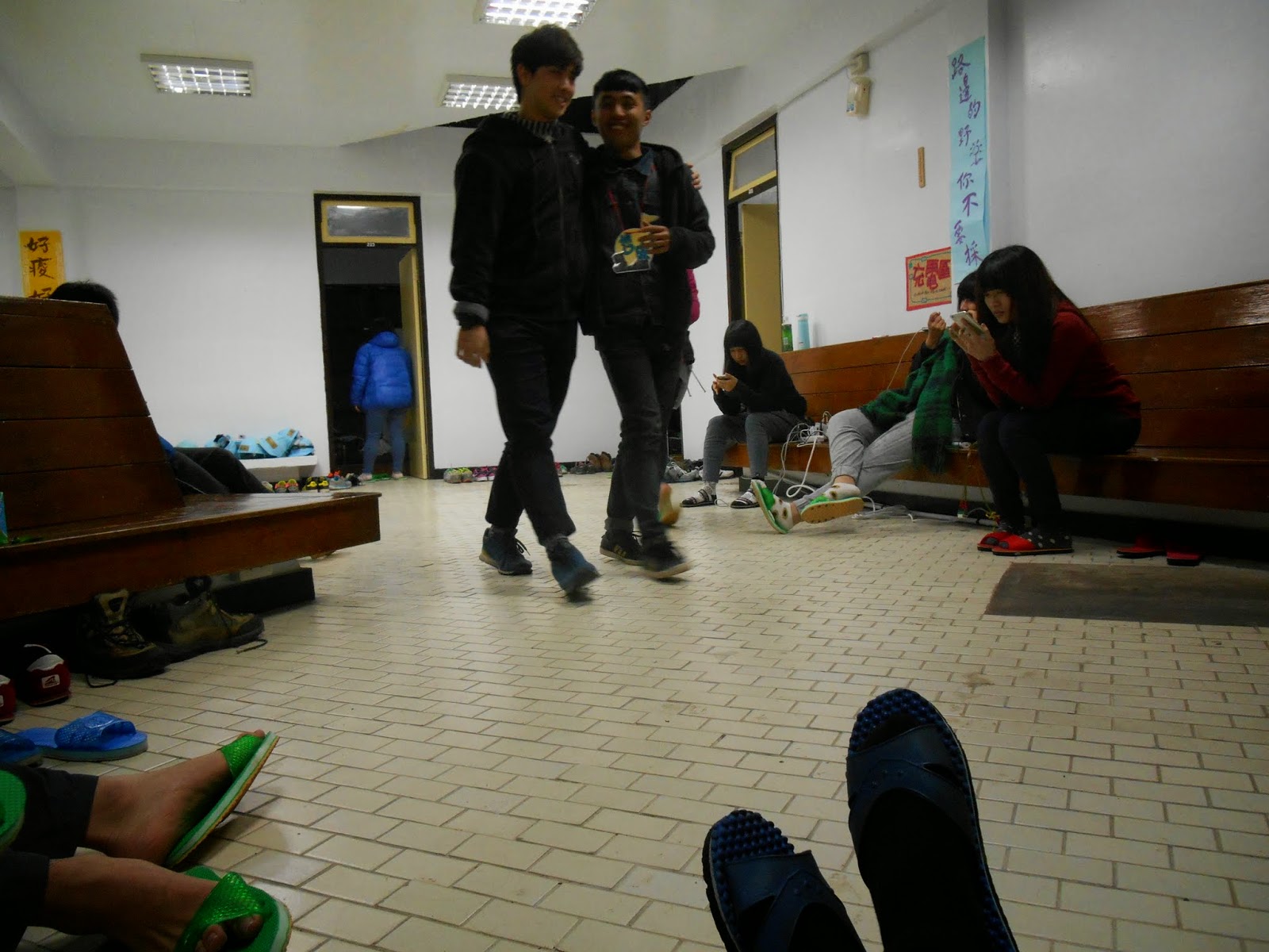 慈恩山莊雖然有熱水器,但是水量不足,只夠洗腳。 在這冷冽的山莊,洗冷水澡不如不洗澡。 順帶一提,因為天氣太冷,所以剛脫下溼答答的襪子,還冒煙了... 就跟冬天我們呼氣是一樣的道理。 |