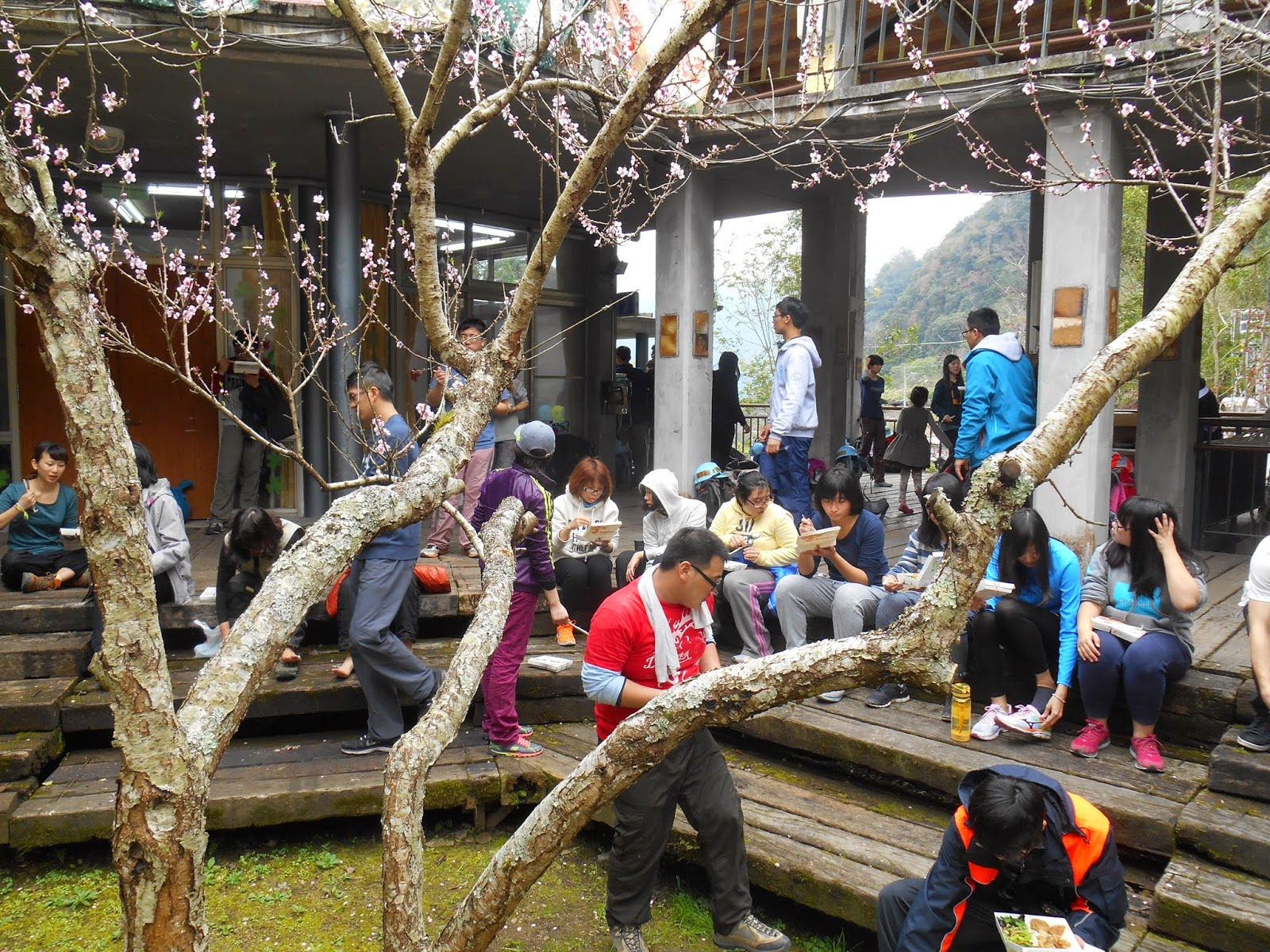 我們就在花樹下吃著午餐。 |