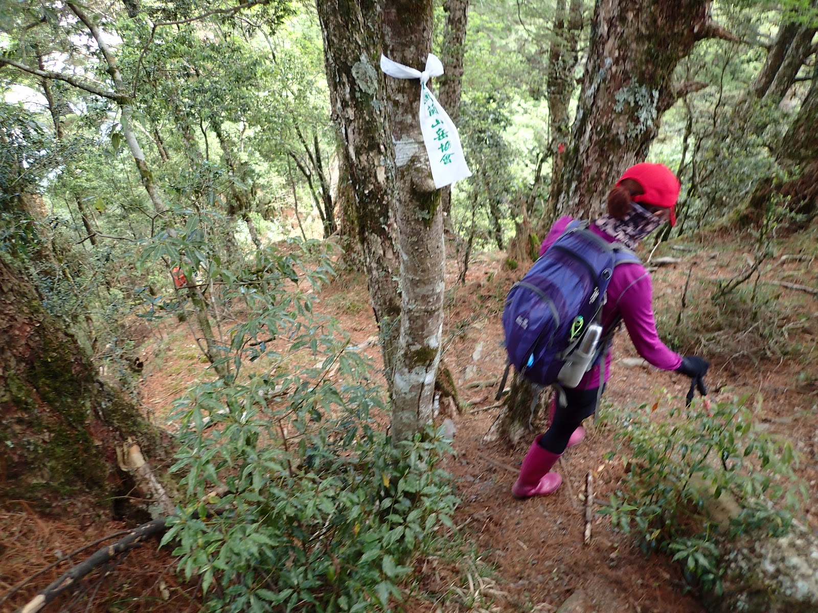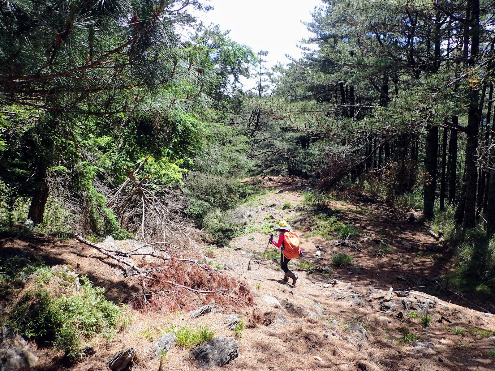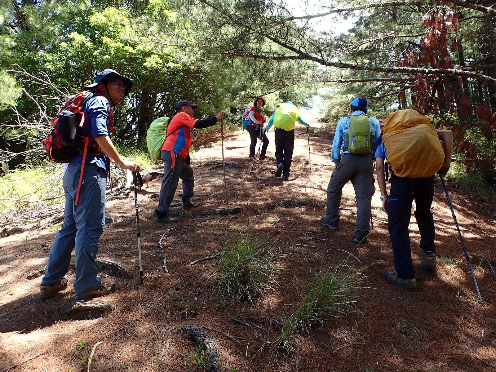 6:04 右切上坡進入山徑, 仍是好走的松針林, 山徑清楚路況佳