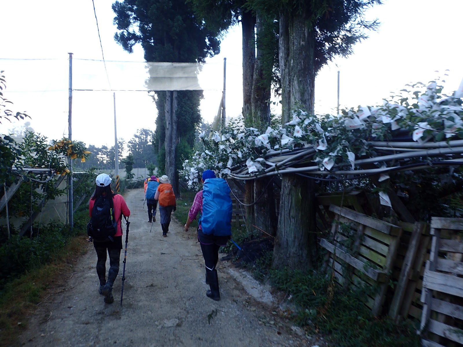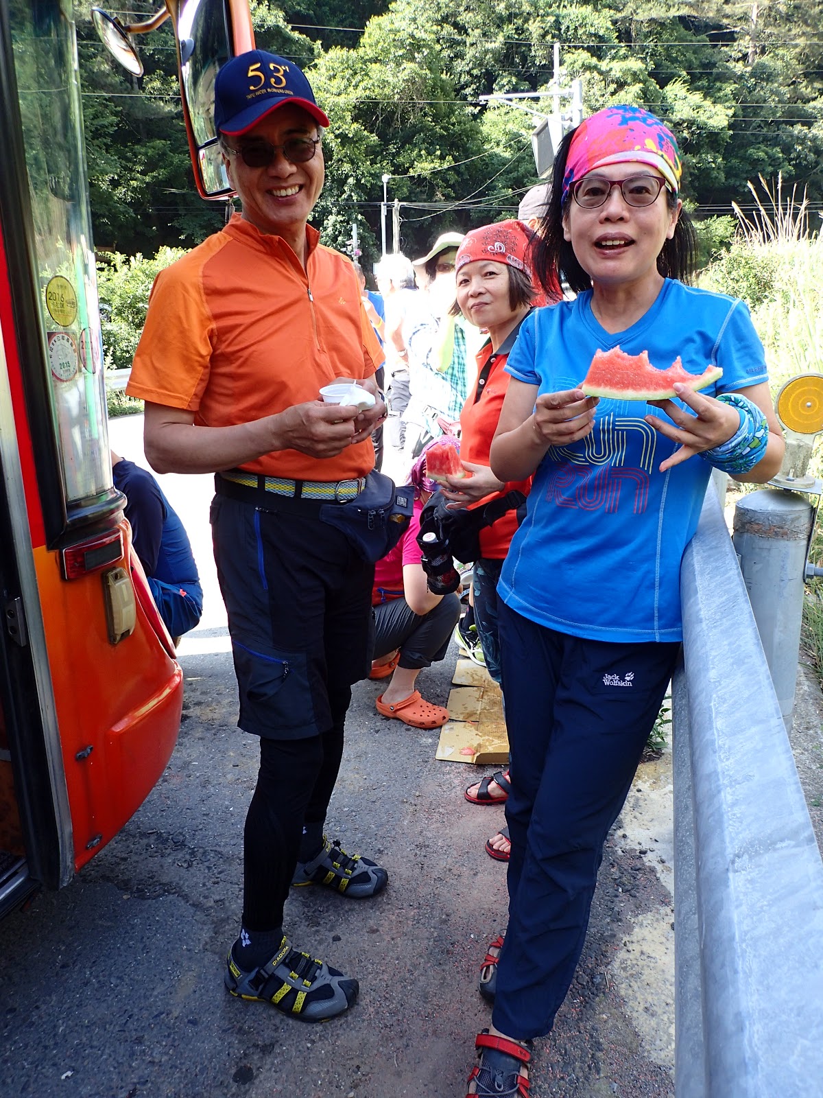 下午4:00館前路集合, 19:00來到南山雨下好大, 在車上吃台鐵便當, 21:00抵達環清宮, 洗臉刷牙後睡覺, 次日3:30起床, 4:00吃早餐, 5:00出發, 一切都在小李哥掌握中 ( 搭乘國光客運, 羅東1764梨山, 豫立商行站可到耶) , 大巴續行至台7甲處, 下車整裝, 踢到路口遇青葉農場的指標