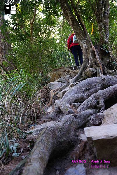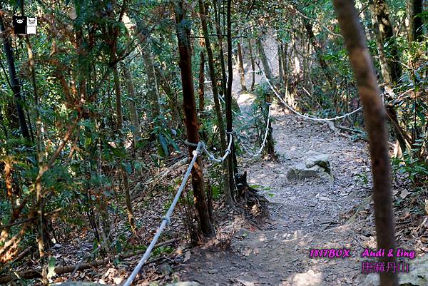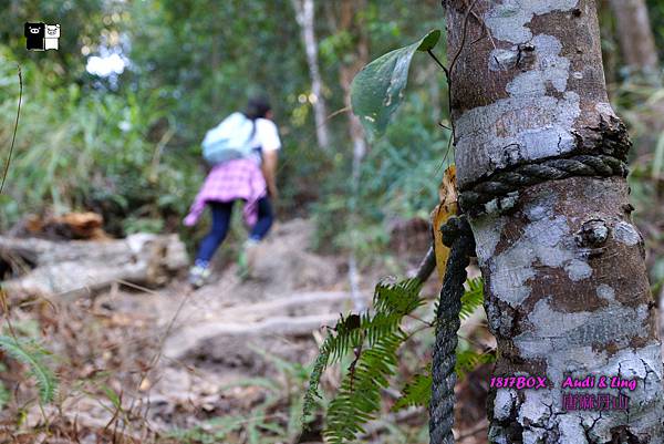 從裡冷部落往唐麻丹山的山路上,有許多路段設有攀繩輔助,