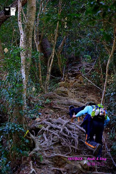 登山道路非一般步道,而是需手腳並用的登山原始林山路,
