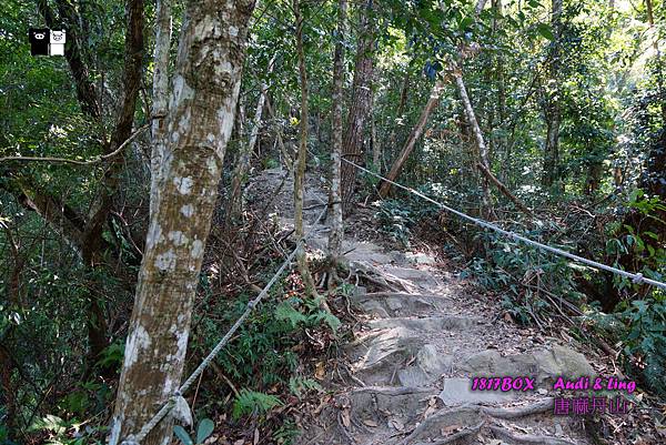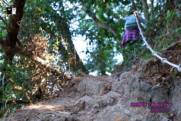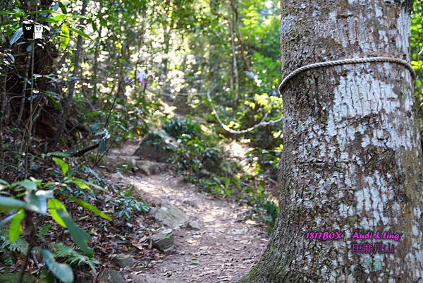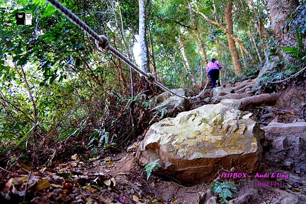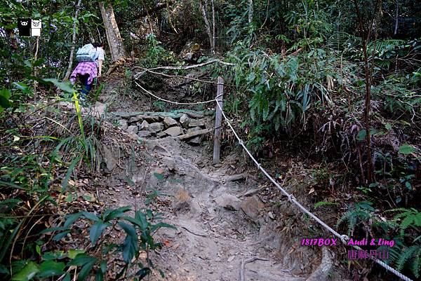 此路段多為山徑且坡度較為陡峭,部分路段需拉繩而上。